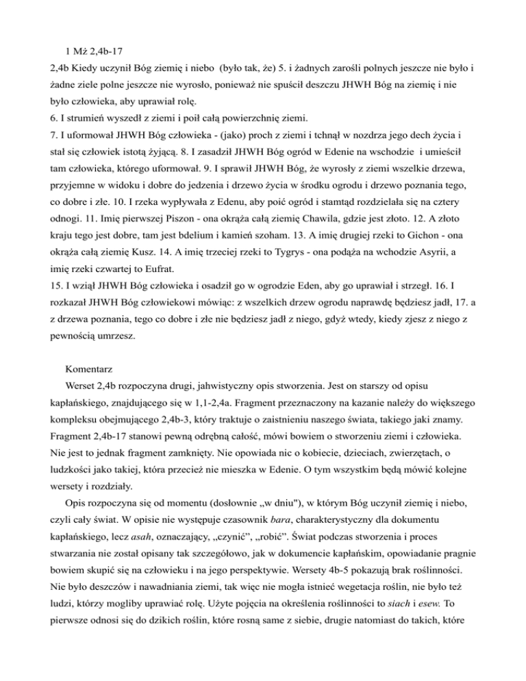 1 Mż 2,4b-17 2,4b Kiedy uczynił Bóg ziemię i niebo