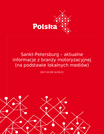 Sankt-Petersburg – aktualne informacje z branży motoryzacyjnej (na podstawie lokalnych mediów) 2017-02-09 14:58:21 2 Petersburski rynek samochodowy w 2016 r. odnotował 9% spadek. Fabryka Nissana w Petersburgu zwiększyła produkcję samochodów w 2016 r. o 8%. Ford Sollers zaczął dostarczać części karoserii do modelu Focus do sieci dilerskich. Wynajem samochodów na minuty w Petersburgu (car sharing). Petersburski rynek samochodowy w 2016 r. odnotował 9% spadek. W 2016 r. wyprodukowano 281 500 samochodów czyli o 9% mniej w porównaniu z wynikami 2015 roku. Analitycy podkreślają, że ostatni wzrost produkcji aut w Petersburgu odnotowano w 2013 roku, zaznaczając jednocześnie, że wynosił on tylko 1%. W ubiegłym roku największy spadek miał miejsce w grudniu – 17%. Było to związane z wcześniejszą świąteczną przerwą i zawieszeniem produkcji na ten okres przez petersburskie zakłady Hyundaia. Jednocześnie Hyundai został liderem produkcji aut w Petersburgu w 2016 roku. Udział w rynku stanowił 74%. Siedem modeli produkowanych w Petersburgu znalazło się w TOP-25 najpopularniejszych samochodów w Federacji Rosyjskiej w 2016 r. Niekwestionowanym liderem został Hyundai „Solaris”, następnie KIA „Rio”, Hyundai „Creta”, Toyota „RAV4”, Toyota „Camry”, Nissan „Qashqai” i Nissan „X-Trail”. Fabryka Nissana w Petersburgu zwiększyła produkcję samochodów w 2016 r. o 8%. W 2016 r. fabrykę Nissana w Petersburgu opuściło 36,4 tys. aut. Odnotowany wzrost produkcji związany jest z wprowadzeniem dwóch nowych modeli – Qashqai i Murano. Tendencja wzrostowa ma szansę na kontynuację również w 2017 roku. Ford Sollers zaczął dostarczać części karoserii do modelu Focus do sieci dilerskich. Do tej pory elementy i części były dostarczane tylko do zakładów montażowych Ford Sollers w Wsiewołożsku (Obwód Leningradzki). Nowy projekt pozwoli zwiększyć wydajność dostawców i producentów Ford Sollers, skrócić czas realizacji zamówień i zmniejszyć zależność cen części od wahań kursowych walut. Wcześniej części karoserii, które trafiały do dilerów były importowane z Europy. W pierwszej kolejności dilerzy otrzymają maski, drzwi i pokrywy bagażnika. Również w fabryce w Nabierieżnych Czełnach (Tatarstan) rozpoczęto testowy montaż części zamiennych. W przyszłości części zamienne do modeli Ford EcoSport i Fiesta mają także powstawać w Rosji. Ford Focus montowany jest w fabryce Ford Sollers w Wsiewołożsku. Udział lokalnych dostawców dla zakładów Forda w Rosji wynosi 50%. Spółka joint venture Ford Sollers posiada w Federacji Rosyjskiej trzy fabryki: w Tatarstanie (Nabierieżnyje Czełny i Ełabuga) i niedaleko St. Petersburgu (Wsiewołożsk). Wynajem samochodów na minuty w Petersburgu (car sharing). Komitet Petersburga ds. infrastruktury transportowej zaprezentował projekt „Delimobil” (automatyczna wypożyczalnia samochodów car sharing). Projekt wdrażany jest przez Włochów. Miejska wypożyczalnia posiada obecnie 100 aut, a do końca roku ich liczba ma wzrosnąć do 300. Korzystanie z samochodów może odbywać się tylko w obrębie petersburskiego KAD-u (obwodnica Petersburga). Koszt wynajmu wynosi 7-10 rubli w zależności od taryfy. Projekt funkcjonuje już w Moskwie. 3 Opr. Miłosz Woźniak 4