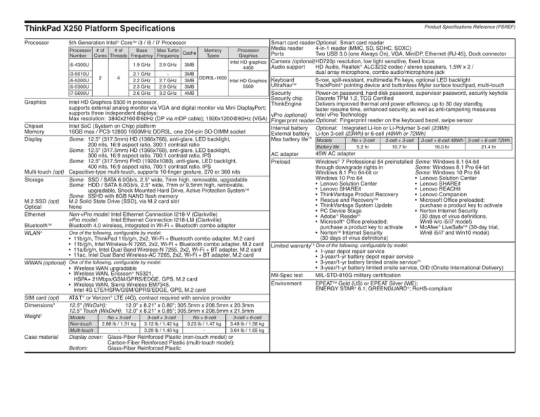 ThinkPad X250 Platform Specifications - PSRef`s