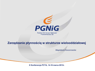 Zarządzanie płynnością w strukturze wielooddziałowej Magdalena Kaczorowska X Konferencja PCTA, 14-16 marca 2013r. Agenda • Kilka słów o PGNiG SA • Główne zagadnienia związane z planowaniem płynności • Proces zarządzania płynnością w PGNiG SA • Finansowanie – zabezpieczenie płynności 2 Grupa Kapitałowa PGNiG Wiodąca pionowo zintegrowana spółka w polskim sektorze gazowo-naftowym Poszukiwanie i Wydobycie Obrót i Magazynowanie Dystrybucja Energetyka Lider produkcji gazu ziemnego oraz ropy naftowej w Polsce Główny importer gazu do Polski oraz właściciel magazynów gazu Prowadzona na szeroką skalę działalność w zakresie dystrybucji gazu Pierwszy w Polsce producent ciepła oraz siódmy producent energii elektrycznej krajowa produkcja: - gaz ziemny: 4,3 mld m³/rocznie, - ropa naftowa: 470 tys. ton/rocznie. 10,9 mld m³ importowanego gazu, 119 tys. km sieci dystrybucyjnej, sprzedaż ciepła 38,7 PJ 1,83 mld m³ całkowitej pojemność magazynowej, 8,8 mld rocznie. sprzedaż energii elektr. 3,7TWh m3 dystrybuowanego gazu 6,6 mln odbiorców końcowych. E&P PGNiG PGNiG Norway POGC Libya Spółki serwisowe Hurt PGNiG Magazyny Operator Systemu Magazynowego Prawne wydzielenie w ramach GK PGNiG Przesył OGP Gaz-System Całkowite wydzielenie – 100% udziałów Skarb Państwa Dane za rok 2011 3 Dystrybucja Sześć regionalnych spółek gazownictwa Prawne wydzielenie w ramach GK PGNiG Handel PGNiG PGNiG Sales & Trading PGNiG Energia Energetyka PGNiG Termika PGNiG SA Lider rynku gazu ziemnego w Polsce. Działalność podstawowa spółki obejmuje poszukiwania i eksploatację złóż gazu ziemnego i ropy naftowej oraz import, magazynowanie, obrót i dystrybucję paliw gazowych i płynnych. Od 23 września 2005 roku akcje PGNiG SA są notowane na Warszawskiej Giełdzie Papierów Wartościowych. Akcjonariat: 72,4% Skarb Państwa, 27,6 % pozostali. Grupa Kapitałowa PGNiG to spółki o profilach produkcyjnym, handlowym i usługowym. Spółki podstawowe specjalizują się w poszukiwaniu i eksploatacji złóż oraz usługach geologicznych i geofizycznych. PGNiG SA ma strukturę wielooddziałową, którą tworzą: 1. Centrala PGNiG w Warszawie, 2. Oddziały handlowe (do niedawna oddziały obrotu gazem), 3. Oddziały poszukiwawcze i eksploatacyjne (Pakistan, Dania, Sanok, Zielona Góra), 4. Pozostałe oddziały (Odolanów, Centralne Laboratorium Pomiarowo Badawcze, Oddział Geologii i Eksploatacji). 4 PGNiG w liczbach – 2011 rok 5 Przychody ze sprzedaży 23 mld PLN Koszty operacyjne w tym koszty zużycia materiałów i surowców 21,3 mld PLN 14 mld PLN Zysk netto 1,6 mld PLN Sprzedaż gazu ziemnego Wydobycie gazu ziemnego Import gazu ziemnego 14,4 mld m3 4,3 mld m3 10,9 mld m3 Wydobycie i sprzedaż ropy naftowej 470 tys. ton Aktywa Grupy Kapitałowej 38 mld PLN Zatrudnienie (30.06.2012) w tym w sektorze poszukiwań i wydobycia w Centrali 32,3 tys. osób 10,6 tys. osób 754 osoby Główne zagadnienia związane z planowaniem płynności Źródła danych – rozproszone: Centrala, oddziały, różne merytoryczne odpowiedzialne za różne obszary działalności departamenty, centra Zdarzenia gospodarcze – zakupy, usługi, sprzedaż, inwestycje, akwizycje, dywidendy, wynagrodzenia, ZUS, podatki, opłaty, transakcje skarbowe – konieczność identyfikacji wszystkich aktualnych i potencjalnych źródeł przepływów oraz zapewnienia, że wszystkie informacje zostaną dostarczone na czas. Terminowość dostarczania informacji – nie jest wyjątkowym zjawiskiem dostarczanie faktur na kilka dni przed wymaganym terminem płatności Odpowiedzialność - Wszyscy pracownicy firmy muszą być świadomi, że ich działalność zawodowa może mieć wpływ na efektywność zarządzania płynnością, niedbalstwo w terminowości dostarczania informacji, księgowania faktur, awizowania płatności może spowodować utratę płynności przez Spółkę lub nadwyżki środków pieniężnych przy jednoczesnym zadłużeniu. 6 Główne zagadnienia związane z planowaniem płynności - zakłócenia W sytuacji kiedy wydatki i wpływy w dużej mierze zależą od czynników pogodowych (gaz jako paliwo grzewcze, produkcja ciepła, energii elektrycznej), cen surowców oraz kursów walutowych, precyzyjne prognozowanie płynności nawet w horyzoncie jednego miesiąca jest wyzwaniem, mimo aktywnego zarządzania ryzykiem rynkowym (mają wpływ na wysokość przepływów handlowych, może wystąpić konieczność zapłaty depozytów zabezpieczających). Zatory płatnicze – istotne ryzyko zwłaszcza w czasach kryzysu gospodarczego (średnie dzienne wpływy Spółki ze sprzedaży gazu przekraczają 100 mln PLN a około 70% przychodów pochodzi od przedsiębiorstw). Zwykle zaległości płatnicze gospodarstw domowych powstają w sezonie zimowym, kiedy rachunki za gaz są kilkakrotnie wyższe niż latem. Opóźnienia w realizacji inwestycji – zaplanowane wydatki inwestycyjne odsuwają się w czasie lub kumulują, niezakończone terminowo inwestycje nie przynoszą przychodów w przewidywanym terminie Zdarzenia nadzwyczajne – dywidendy, porozumienie z Gazpromem dotyczące zmiany formuły gazowej 7 Proces zarządzania płynnością w PGNiG SA Mając na uwadze efektywność procesu zarządzania płynnością i jej prognozowania w możliwie długiej perspektywie i wysokiej jakości, PGNiG SA wprowadziła Procedurę zarządzania płynnością, która definiuje komórki organizacyjne zaangażowane w proces, zakres ich odpowiedzialności, procesy i narzędzia związane z realizacją zarządzania płynnością. Procedura obejmuje zagadnienia: • Realizacja płatności • Zarządzanie wolnymi środkami pieniężnymi • Finansowanie działalności bieżącej i inwestycji • Zarządzanie ryzykiem utraty płynności na skutek zakłóceń • Ryzyko operacyjne 8 Proces zarządzania płynnością w PGNiG SA Proces zarządzania płynnością jest w Spółce scentralizowany. Za zarządzanie płynnością odpowiada