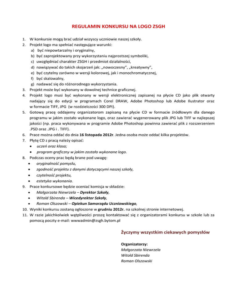 REGULAMIN KONKURSU NA LOGO ZSGH
