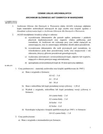 Cennik usług świadczonych - Archiwum Główne Akt Dawnych