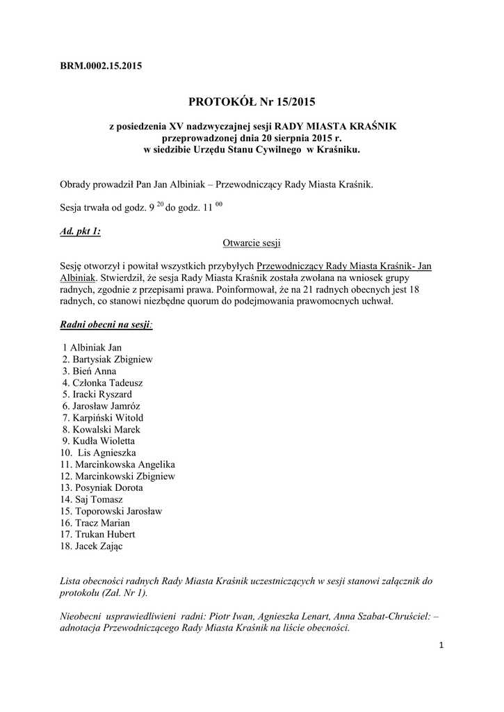 PROTOKÓŁ Nr 15/2015 - Urząd Miasta Kraśnik