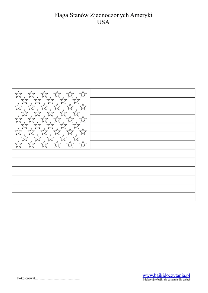 Flaga Stanów Zjednoczonych Ameryki USA Pokolorował... ................................................ www.bajkidoczytania.pl Edukacyjne bajki do czytania dla dzieci