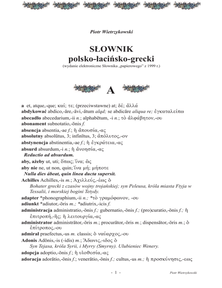 absolutny absolūtus, 3; infinītus, 3; ¤p∂lzto|./on