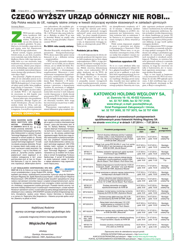 4 10 lipca 2014 | www.portalgorniczy.pl | TRYBUNA GÓRNICZA CZEGO WYŻSZY URZĄD GÓRNICZY NIE ROBI... Gdy Polska weszła do UE, nastąpiły istotne zmiany w kwestii dotyczącej wyrobów stosowanych w zakładach górniczych [email protected] Z WUG jest jak z policją, którą zasadniczo lubi się wtedy, gdy jest potrzebna. Urzędowi nie raz ani dwa dostaje się od tzw. zwykłych górników. Na przykład za to, że wszystko, czego używa się pod ziemią, musi być dopuszczone przez WUG do tego użytkowania. Kowal zawinił, Cygana powiesili. Górnik uważa, że „nie dość, że podstawowe materiały, typu śruby, blachy wykładkowe, klucze, rolki i tego typu pierdółki, które są u nas stosowane, mają trzykrotnie wyższą cenę niż w rzeczywistości powinny, właśnie przez dopuszczenia złodziejskiego urzędu górniczego, to na dodatek najwyraźniej dopuszczenia dostają tylko producenci, którzy ostro dają w łapę!”. Inny przyznaje: „Nigdzie nie przeczytałem ani nie usłyszałem jeszcze na temat tego, że cena podstawowej śrubki M20/50 dla kopalni jest 3–4 razy wyższa od takiej samej śrubki, którą mógłbym kupić choćby w Castoramie...”. I uważa, że „CBA i NIK mogłyby się nieco zakręcić dookoła WUG i ich dopuszczeń do stosowania na dole kopalni oraz za ile te dopuszczenia są załatwiane”. I jeszcze jeden wpis, nim przejdziemy do wyjaśniania, dlaczego Cygana powiesili. Górnik pisze: „Nie raz i nie dwa miałem wtedy tzw. R-kę, czyli papier/skierowanie do wydania materiału z magazynu. A na tej R-ce wypisana jest cena jednostkowa, dla przykładu górna rolka do przenośnika 1200 – cena? Ponad 40 zł! Śruba 20 mm. Cena? Ok. 4 zł! Przecież taką samą śrubę kupię w «Rolniku» za jakieś 70 gr, max za złotówkę! Różnią się między sobą tylko tym, że mają pieczątkę z dopuszczeniem WUG!”. Po 2004 roku zaszły zmiany Mirosław Krzystolik, wicedyrektor Departamentu Energomechanicznego WUG, słyszy często takie opinie i nieraz tłumaczył, że są – delikatnie mówiąc – niesprawiedliwe. – WUG nie daje „pieczątek z dopuszczeniami” ani na śrubki, ani na ubrania robocze, ani na młotki lub kilofy. Pracownicy często mylą to, co obowiązywało przed 2004 r., z obowiązującymi uregulowaniami. Mianowicie z podwyższonymi wymaganiami bezpieczeństwa pracy, oznakowaniem CE i uregulowaniami wynikającymi z rozporządzenia Rady Ministrów z 30 kwietnia 2004 r., w związku z Prawem geologicznym i górniczym, o dopuszczeniu wyrobów do stosowania w zakładach górniczych. Owszem, do 1 maja 2004 r. można było stosować w nich wyłącznie wyroby dopuszczone w drodze decyzji przez prezesa WUG. Gdy Polska weszła do UE, nastąpiły istotne zmiany w kwestii dotyczącej wyrobów, które mogą być stosowane po raz pierwszy w zakładach górniczych. Wspomniane rozporządzenie wymienia kilkanaście grup urządzeń, któ- re wymagają akceptacji prezesa WUG, by mogły być używane pod ziemią. Od „elementów górniczych wyciągów szybowych”, przez „wozy do przewozu ludzi...” po „wozy i pojazdy do przewozu lub przechowywania środków strzałowych”. W dokumencie nie ma nic o tym, że dopuszczenia wymagają nakrętki, co obowiązywało przed 1994 r. Teraz już nie. Podobnie jak za Odrą – Za wyrób dopuszczony do obrotu odpowiada producent lub importer towaru. Jeśli urządzenie jest na liście objętej rozporządzeniem z 2004 r., to jego producent i dystrybutor występuje do prezesa WUG o dopuszczenie do stosowania. Składa stosowną dokumentację wyrobu, wnosi maksymalnie 654 zł opłaty skarbowej, nie do WUG, ale do Urzędu Miejskiego w Katowicach. Decyzja wydawana jest w terminie do 30 dni. Często wydaje się, np. w przypadku maszyn wyciągowych i stacji transformatorowych, postanowienie na próbę. Jej czas zależy od stop- nia skomplikowania urządzenia, od 3 do 12 miesięcy – tłumaczy dyrektor Krzystolik. Dodajmy, że od 2012 r. dopuszczenie jest bezterminowe, wcześniej wydawane były na maksimum 5 lat. Oznacza to, że o ponowne dopuszczenia wystąpią ci, którzy otrzymali je w 2011 r. Polski system dopuszczeń urządzeń do pracy w górnictwie jest zbieżny z obowiązującym w Niemczech i Wielkiej Brytanii. Wbrew temu, co się powszechnie i stereotypowo uważa, w Polsce maleje lista urządzeń i maszyn wymagających dopuszczenia przez WUG. Tajemnicza sygnatura CE No to co z tymi młotkami kilka razy droższymi od podobnych w sklepie? Albo z „głupimi koszulkami”? O to należy pytać się już w spółkach, w tych działach, które organizują przetargi, bo z zakupami ubrań roboczych WUG nie ma nic wspólnego. Pomijając proste narzędzia, wszystko inne musi spełniać nie wymagania WUG, lecz dyrektywy tzw. nowego podejścia. Stanowią one o tym, jakie zagrożenia producent powinien wykryć i wyeliminować, by wyrób mógł być m.in. bezpiecznie użytkowany. Zatem na każdym wyrobie dopuszczonym do obrotu handlowego na terenie UE ma widnieć sygnaturka CE (Conformité Européenne), za pomocą której producent deklaruje, że jego wyrób spełnia wymagania dyrektyw. – O ile dopuszczenia WUG wymaga sprzęt strzałowy, to materiały wybuchowe mają spełniać wymagania CE. Producent sam zabiega o przebadanie jego produktu do stosowania w szczególnych warunkach w ośrodkach certyfikujących. Wiadomo, że wytwórca hełmów górniczych wykona je z materiału antyelektrostatycznego i w ich opisie zaznaczy, że mogą być stosowane nie tylko w budownictwie, ale i w warunkach zagrożenia metanowego – informuje dyrektor Krzystolik. Tego, co inni uznali za bezpieczne i co ma oznaczenie CE, WUG nie weryfikuje, bo od roku 1994 upłynęło sporo czasu. A dziś certyfikacja tego, co już inni certyfikowali, obowiązuje za Bugiem, w Rosji w szczególności... 4185440/A ANDRZEJ BĘBEN WOKÓŁ GÓRNICTWA RADA NAUKOWA GŁÓWNEGO INSTYTUTU GÓRNICTWA OTWORZYŁA W CZERWCU 2014 R. trzy kolejne przewody doktorskie dla ucz
