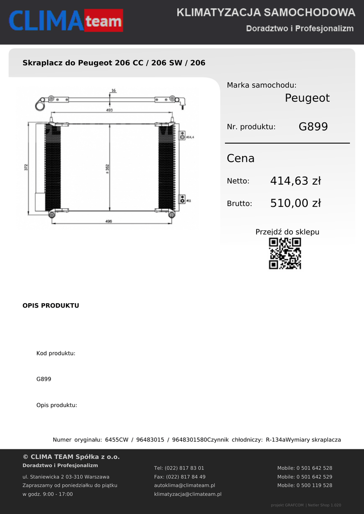 ClimaTeam Skraplacz do Peugeot 206 CC / 206 SW / 206