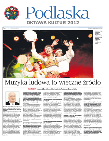 Podlaska OKTAWA KULTUR 2012 Piątek | 29 czerwca 2012 Dodatek specjalny MATERIAŁY PRASOWE <Kolorowe stroje, żywiołowa muzyka, ekspresyjny taniec – co roku na Podlaskiej Oktawie Kultur nie brakuje artystycznych emocji Muzyka ludowa to wieczne źródło MATERIAŁY PRASOWE ROZMOWA | Andrzej Dyrdał, dyrektor festiwalu Podlaska Oktawa Kultur Podlaska Oktawa Kultur obchodzi mały jubileusz – to już piąta edycja festiwalu. Wierzył pan, że przetrwa tyle i będzie się rozwijać? Od początku istnienia Oktawy zakładałem, że będzie to impreza cykliczna i że będzie się rozwijała. Zabiegałem o to od bardzo wielu lat, z takim zamysłem szukałem poparcia i pieniędzy. I udało się. Cztery poprzednie edycje tego festiwalu dostarczyły nam nie tylko fantastycznych wrażeń artystycznych, ale także sporo spostrzeżeń i przemyśleń organizacyjnych. I dochodzimy do wniosku, że formuła festiwalu jest sprawdzona od strony organizacji i tu nie ma czego zmieniać. Ale na pewno chcemy się rozwijać pod względem artystycznym. I ten rozwój widać, bo chęć uczestnictwa w naszym festiwalu z roku na rok zgłasza coraz więcej artystów. Oktawa to festiwal prezentujący kulturę i dorobek artystyczny zespołów z Polski i krajów związanych z zamieszkałymi w województwie podlaskim Białorusinami, Litwinami, Romami, Rosjanami, Tatarami, Ukraińcami i Żydami. A tymczasem występują także wykonawcy z Turcji, Francji, Indii czy Ekwadoru, a więc geograficznie i kulturowo bardzo odlegli od Podlasia? To jest magia Internetu. Za pośrednictwem sieci wielu wykonawców dowiaduje się, że jest taki festiwal, podoba im się i bardzo chcą tu przyjechać. Chcą pokazywać swoją kulturę, a jednocześnie poznawać naszą. Dlatego postanowiliśmy nie zamykać się na te propozycje i zapraszać także zespoły z nieco egzotycznych miejsc. Dlatego formuła się rozszerzyła. Nadal jednak większość wykonawców reprezentuje kraje i kultury związane z naszą częścią Europy. A zastanawiacie się nad zmianą koncepcji Podlaskiej Oktawy Kultur? Już nie festiwal promujący osiem kultur tworzących oblicze Podlasia, ale wielki festiwal folkowy? Nie będziemy zmieniać formuły. Oczywiście bardzo nas cieszy, że zespoły z odległych zakątków świata chcą do nas przyjeżdżać, bo świadczy to o dużym zainteresowaniu festiwalem na świecie i jego renomie. Wiele o tym mówi fakt, że niektórzy wykonawcy czekali na możliwość występu na Oktawie Kultur nawet po dwa lata. Będziemy się jednak trzymać tych ośmiu kultur. A zapraszamy wszystkich chętnych. Jaki jest mechanizm doboru wykonawców na festiwal? Powołaliśmy międzynarodową radę artystyczną, która czuwa nad poziomem imprezy. Jej członkowie na terenie swoich krajów wyszukują ciekawe zespoły i zachęcają je do udziału w festiwalu. Poza tym mamy na naszej stronie internetowej regulamin dla potencjalnych uczestników, którzy po spełnieniu zawartych w nim warunków sami się do nas zgłaszają. Po przesłaniu nam materiałów audio i wideo dokonujemy selekcji zgłoszeń i wybieramy te najbardziej atrakcyjne. A selekcja jest dosyć ostra. A których wykonawców poleca pan w tym roku szczególnie? Wszystkie zespoły przeszły przez nasze sito i reprezentują naprawdę bardzo wysoki poziom. Ale niewątpliwie wielką atrakcją będą koncerty takich zespołów jak Chór im. Veryovki z Ukrainy, Kabardinka z Kabardo-Bałkarii, Divo i Skaz z Rosji czy Adar-Kramim z Izraela. To na pewno będą takie perełki tegorocznej edycji festiwalu. Czy potwierdza pan spostrzeżenia wielu obserwatorów sceny muzycznej, że wyraźnie widać wzrost zainteresowania muzyką ludową, że coraz więcej wykonawców inspiruje się folkiem? Tak, jest taka tendencja. Wystarczy wspomnieć o wielkich sukcesach Kapeli ze Wsi Warszawa czy festiwali promujących muzykę źródeł. I bardzo mnie to cieszy. To zresztą jest polska tradycja, już przecież nasi wielcy kompozytorzy z Chopinem, Szymanowskim, Lutosławskim czy Kilarem na czele czerpali z muzyki ludowej pełnymi garściami. Świetnie, że młodsi muzycy także dostrzegają atrakcyjność naszej tradycji muzycznej i idą podobną drogą. Ale kiedyś, w latach PRL, też próbowano promować muzykę ludową. Owszem, ale robiono to w niedobry sposób. Opakowywano to w jakiś dziwny, cepeliowski strój, stylizowano, nie promowano autentyzmu. Nic dziwnego, że niewiele osób chciało tego słuchać. To była niedobra tradycja i jeszcze czasami pokutuje takie podejście, że jak coś ludowe, to gorsze. Na szczęście to powoli odchodzi. Dowodem na to jest ogromna popularność festiwali promujących kulturę źródeł. I nie tylko chodzi o naszą Podlaską Oktawę Kultur. Fantastyczne są choćby warszawskie imprezy – Nowa Tradycja czy Skrzy- żowanie Kultur. Coraz więcej muzyków poszukuje tam inspiracji. Bo w muzyce ludowej naprawdę wiele się dzieje, są fantastyczne harmonie, bardzo ciekawa rytmika. Ona jest przebogatym, niemal niewyczerpanym źródłem. Wróćmy do Podlaskiej Oktawy Kultur. Wasza oferta jest bardzo urozmaicona stylistycznie: od czystego ludowego grania do projektów jazzowych czy widowisk tanecznych. Taka różnorodność pomaga zdobyć publiczność? Różnorodność to nasz pomysł na ciekawą imprezę. Przypomnę, że nasz festiwal ma w drugim członie nazwy Festiwal Muzyki, Sztuki i Folkloru. Ten ostatni element jest co prawda dominujący, ale nie wyczerpuje naszej propozycji. Chcemy prezentować zespoły naprawdę wysokiej klasy, które zajmują się najrozmaitszymi formami sztuki. Pozornie taka szeroka formuła może sprawiać wrażenie bałaganu, ale chcemy pokazać kulturę naszego regionu z różnych perspektyw. Podlaska Oktawa Kultur to specyficzny festiwal – odbywa się w wielu miejscach równocześnie. Jest tych koncertów bardzo dużo. Wymaga to zupełnie innego podejścia, innych umiejętności niż robienie imprezy na jednej czy dwóch >2 scenach. 2 Podlaska