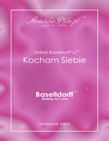 Sławomir Mika MoŜesz Rozdawać Ten Anielski Plik Swoim Przyjaciołom ☺ *** Dekrety Baselldorff’a™ to cudowne teksty, które mają moc uzdrawiania Ciebie i Twojego Ŝycia. Uzdrowienie dokonuje się poprzez przemianę Twoich wyobraŜeń. To Twoje wyobraŜenia kierują energią. Twoje zakorzenione wyobraŜenia są przyczyną materializacji wszystkiego, co w Tobie i co w Twoim Ŝyciu. Przemieniając swoje wyobraŜenia, przemieniasz swój świat. Aby Dekret był skuteczny naleŜy czytać go dwa razy dziennie przez co najmniej 90 dni. Pierwsze efekty pojawiają się często juŜ po kilku dniach. *** www.Baselldorff.pl Niniejsza publikacja moŜe być kopiowana oraz dowolnie rozprowadzana Tylko i wyłącznie w formie dostarczonej przez wydawcę. Zabronione są jakiekolwiek zmiany w jej zawartości. Wszelkie prawa zastrzeŜone. All rights reserved. Copyright © Sławomir Mika DEKRET Kocham siebie Kocham i szanuję siebie. Wiem, Ŝe jestem cenny i wartościowy. Z kaŜdym dniem coraz pełniej odkrywam swoją wyjątkowość i boskość. Pozwalam sobie doświadczać swojej boskości. Dlatego juŜ teraz wybieram najczystszą i najprawdziwszą postać siebie. Pozwalam odejść wszystkim iluzjom i ograniczeniom. Czuję się wspaniale, kiedy kocham siebie. Kocham i doceniam siebie. Z kaŜdym dniem odkrywam coraz wspanialsze talenty w sobie. Z kaŜdym dniem odkrywam jak wiele mam do zaoferowania światu. Z radością uświadamiam sobie, Ŝe jestem wolną i niczym nieograniczoną boską istotą. ZauwaŜam, Ŝe świat patrzy na mnie z miłością i zachwytem. Wiem jak cenny jestem dla innych ludzi i jak wiele mogę im dać. Z radością obdarzam świat wspaniałym wewnętrznym blaskiem, który mam w sobie. Kocham i podziwiam siebie. Kocham moje ciało i wiem, Ŝe jest ono wyrazem mojego pięknego wnętrza. Z radością obserwuję jak moje wnętrze i moje ciało rozświetlają się i rozpromieniają kaŜdego dnia. Kocham i akceptuję siebie takim, jakim jestem. Z miłością dbam o siebie i swoje ciało. Daję sobie miłość, na którą zasługuję. Tak, ja naprawdę kocham siebie. Myślę i mówię o sobie tylko dobrze i z miłością. Akceptuję w sobie miłość, radość i szczęście. Zasługuję na miłość, radość, szczęście i błogość w moim Ŝyciu. Wiem, Ŝe świat wzmacnia i daje mi dokładnie to, co sam sobie daję. Dlatego w kaŜdej chwili, kaŜdą myślą i kaŜdym słowem daję sobie miłość i szacunek najwyŜszej jakości, a świat oddaje mi je w zwielokrotniony sposób. Moja rzeczywistość to czysta bezwarunkowa miłość i szacunek do samego siebie. Zasługuję na wszystko, co najlepsze. Kocham siebie. Dobrze i w porządku jest kochać siebie. Pozostaję w tej miłości, szczęściu i błogości. Oto prezenty dla Ciebie ☺ Pobierz Darmową Muzykę - www.AnielskiePliki.pl/muzyka Pobierz Darmowe Tapety Afirmacyjne - www.AnielskiePliki.pl/tapety Pobierz Darmowe Dekrety - www.AnielskiePliki.pl/dekrety www.baselldorff.pl Sławomir Mika Telefon: 887 62 62 00 e-mail: [email protected] strona: www.Baselldorff.pl www.AnielskiePliki.pl www.SlawomirMika.pl www.blog.SlawomirMika.pl