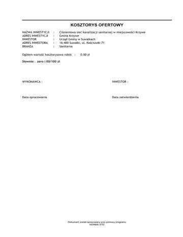 KOSZTORYS OFERTOWY - kanalizacja Krzywe