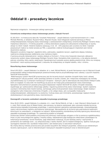 Dnia 26.02.2015r. zespół Oddziału II w składzie: dr n. med. Michał Mielnik, dr hab. n. med. Wojciech Widuchowski, dr