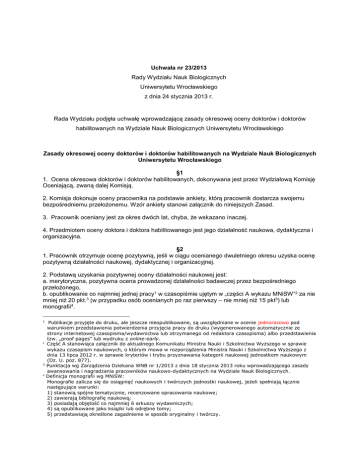 Uchwała nr 23/2013 - Wydział Nauk Biologicznych