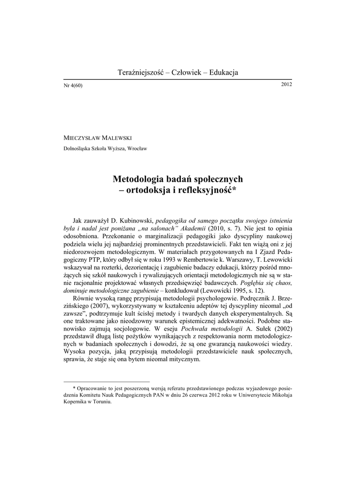 Metodologia badań społecznych – ortodoksja i refleksyjność