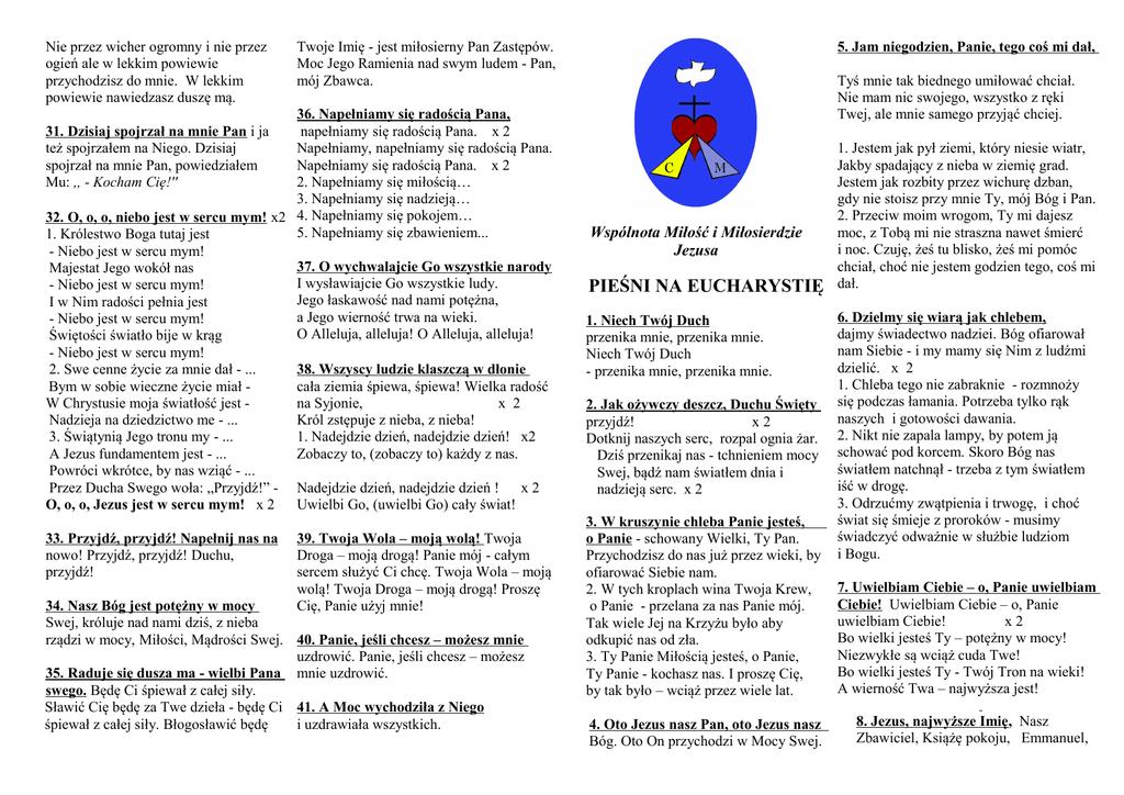 pieśni na eucharystię - Wspólnota Miłość i Miłosierdzie Jezusa
