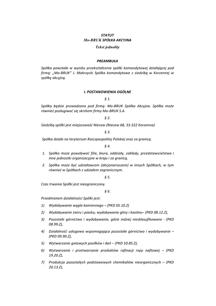 STATUT Mo-BRUK SPÓŁKA AKCYJNA Tekst jednolity