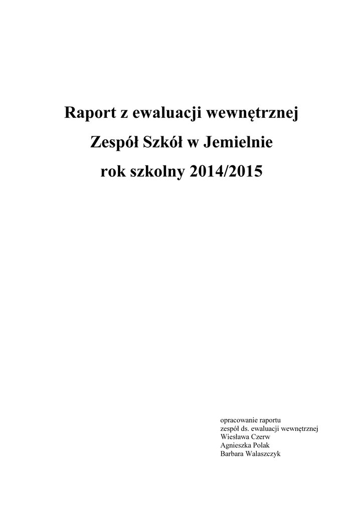 Raport z ewaluacji wewnętrznej Zespół Szkół w Jemielnie rok