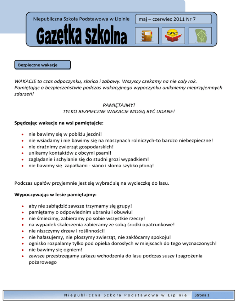 Gazetka szkolna | maj - czerwiec 2011 | Nr 7