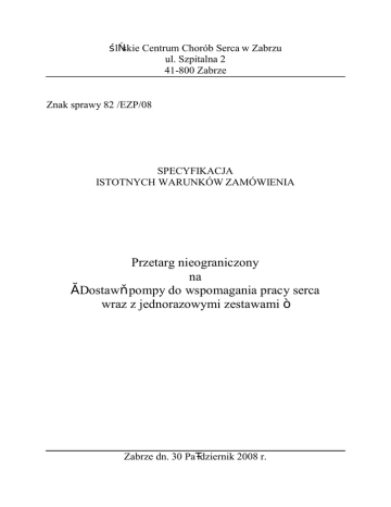 Przetarg nieograniczony na - Śląskie Centrum Chorób Serca w Zabrzu