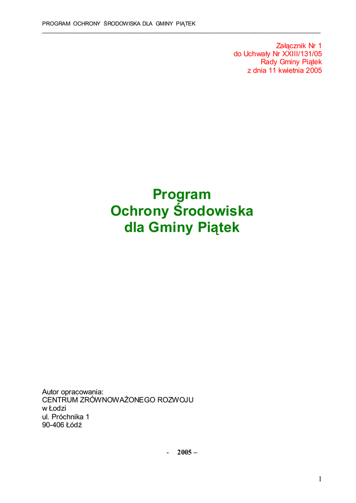 Program Ochrony Środowiska dla Gminy Piątek