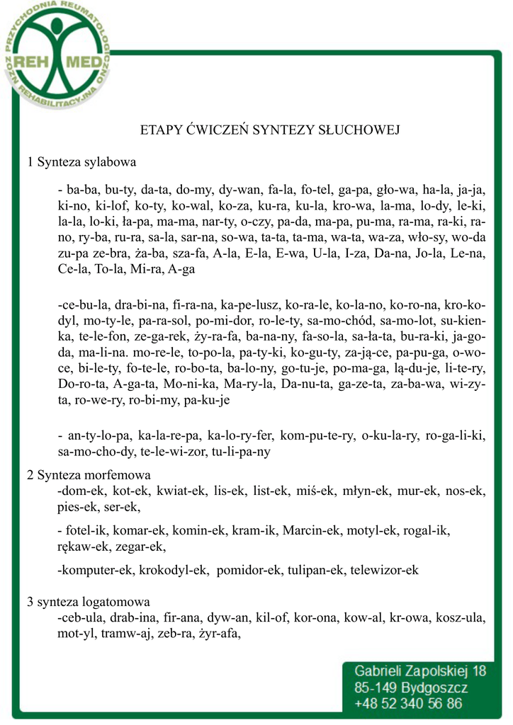 Wyrazy Do Ćwiczeń Syntezy Słuchowej