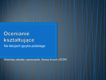 Na lekcjach języka polskiego Materiały zebrała i opracowała: Teresa Kozioł LSCDN • • • • • Od roku 2000 ocenianie kształtujące stało się przedmiotem badań naukowych oraz działań mających na celu poprawę pracy szkoły. Liderka projektu Organizacji Współpracy Gospodarczej i Rozwoju (OECD) Janet Looney przybyła na zaproszenie Centrum Edukacji Obywatelskiej do Polski na rozmowy z MEN w sprawie stosowania oceniania kształtującego. Powstał Program Szkoła Ucząca Się (SUS), który jest wspólnym przedsięwzięciem Centrum Edukacji Obywatelskiej i Polsko-Amerykańskiej Fundacji Wolności. http://sus.ceo.org.pl/ • Ocenianie kształtujące - to częste, interaktywne ocenianie postępów ucznia i uzyskanego przez niego zrozumienia materiału, tak by móc określić, jak uczeń ma się dalej uczyć • i jak najlepiej go nauczać. • Art. 44c. 1. Nauczyciel jest obowiązany indywidualizować pracę z uczniem na zajęciach edukacyjnych odpowiednio do potrzeb rozwojowych i edukacyjnych oraz możliwości psychofizycznych ucznia. • Art. 44e. 3. Nauczyciel uzasadnia ustaloną ocenę w sposób określony w statucie szkoły. • Art. 44i. • 3. Począwszy od klasy IV szkoły podstawowej: • 1) oceny bieżące i śródroczne oceny klasyfikacyjne z obowiązkowych i dodatkowych zajęć edukacyjnych, • a także śródroczna ocena klasyfikacyjna zachowania są ustalane w sposób określony w statucie szkoły; • Art. 44i. • 4. Począwszy od klasy IV szkoły podstawowej, oceny bieżące oraz śródroczne i roczne oceny klasyfikacyjne ze wszystkich albo wybranych obowiązkowych lub dodatkowych zajęć edukacyjnych, a także śródroczna i roczna ocena klasyfikacyjna zachowania mogą być ocenami opisowymi, jeżeli statut szkoły tak przewiduje. • § 3. Wymagania edukacyjne, o których mowa w art. 44b ust. 8 pkt 1 ustawy, dostosowuje się do indywidualnych potrzeb rozwojowych i edukacyjnych oraz możliwości psychofizycznych ucznia: również • 4) nieposiadającego orzeczenia lub opinii wymienionych w pkt 1–3, który jest objęty pomocą psychologicznopedagogiczną w szkole – na podstawie rozpoznania indywidualnych potrzeb rozwojowych i edukacyjnych oraz indywidualnych możliwości psychofizycznych ucznia dokonanego przez nauczycieli i specjalistów. • § 14. Ocenianie bieżące z zajęć edukacyjnych ma • na celu monitorowanie pracy ucznia oraz przekazywanie uczniowi informacji o jego osiągnięciach edukacyjnych pomagających • w uczeniu się, poprzez wskazanie, co uczeń robi dobrze, co i jak wymaga poprawy oraz jak powinien dalej się uczyć . • Rozporządzenie Ministra Edukacji Narodowej z dnia 27 sierpnia 2012. w sprawie podstawy programowej wychowania przedszkolnego oraz kształcenia ogólnego w poszczególnych typach szkół ( Dz. U. 2012 r. poz. 977 ): - Do najważniejszych umiejętności zdobywanych przez ucznia • w trakcie kształcenia ogólnego w szkole podstawowej należą: 6)umiejętność uczenia się jako sposób zaspokajania naturalnej ciekawości świata , odkrywania swoich zainteresowań i przygotowania do dalszej edukacji; Do najważniejszych umiejętności zdobywanych przez ucznia w trakcie kształcenia ogólnego na III i IV etapie edukacyjnym należą: 7) umiejętność rozpoznawania własnych potrzeb edukacyjnych oraz uczenia się; • Publikacje CEO: • http://www.ceo.org.pl/pl/ok/news/publikacje • Skarbiec CEO: • http://www.ceo.org.pl/pl/ok/skarbiecok/inspiracje/artykuly-o-ok • Literatura: • Danuta Sterna: Ocenianie kształtujące w praktyce (elementy oceniania: podawanie uczniom celów lekcji, określanie kryteriów sukcesu, praca z informacją zwrotną, zadawanie uczniom pytań kluczowych, techniki zadawania pytań, ocena koleżeńska, samoocena, współpraca z rodzicami). • Danuta Sterna: Uczę (się) w szkole (strategie oceniania- jak pomóc uczniom w uczeniu się?) • Oparcie na własnej praktyce stosowanie oceniania kształtującego daje jej przekazowi wiarygodność i pokorę wobec trudnej pracy nauczyciela. • Szkolne inspiracje Zeszyty I – VII • • • • • Pobierz "Zeszyt 1 - Cele lekcji" (pdf) Pobierz "Zeszyt 2 - Nacobezu" (pdf) Pobierz "Zeszyt 3 - Informacja zwrotna" (pdf) Pobierz "Zeszyt 4 - Współpraca z rodzicami" (pdf) Pobierz "Zeszyt 5 - Rozwód oceny kształtującej z sumującą" (pdf) • Pobierz "Zeszyt 6 - Techniki zadawania pytań. Pytania kluczowe." (pdf) • Pobierz "Zeszyt 7 - Ocena koleżeńska i samoocena" (pdf) • http://www.ceo.org.pl/pl/ok/news/filmy-ok • http://www.doradcametodyczny.pl/filesmy/new_docs/Inne_dokumenty/zeszyt_%20ocenianieksz taltujace.pdf • Sukces szkoły zależy od jakości dwóch powiązanych ze sobą procesów – prowadzonego przez nauczycieli nauczania oraz uczenia się uczniów. • Ocenianie kształtujące - ocenianie pomagające nauczycielowi nauczać, • a uczniom się uczyć. Nauczyciel, który stosuje ocenianie kształtujące: • 1. Określa cele lekcji i formułuje je • w języku zrozumiałym dla ucznia • 1. Określa cele lekcji i formułuje je w języku zrozumiałym dla ucznia, to znaczy: • Nauczyciel przed przystąpieniem do planowania lekcji zastanawia się, jakie cele chce zrealizować z uczniami podczas lekcji. Określa też, co chce, aby uczniowie osiągnęli. • Cele - po co się uczymy, do czego dążymy? : • np. Zrozumiecie, czym różni się poezja od prozy. • Często cel, który stawia sobie nauczyciel, może być dla ucznia niejasny. Dlatego nauczyciel musi go tak sformułować, aby stał się on zrozumiały dla każdego ucznia. Pod koniec lekcji wraz z uczniami nauczyciel sprawdza, czy cel został osiągnięty. • Przykłady dobrych praktyk • Ewa Kurek, nauczycielka języka polskiego • w Szkole Podstawowej nr 4 w Andrychowie (Zeszyt II Nacobezu): „Umówiłam się z uczniami, iż na początku zajęć będę informowała ich o celu lekcji. Jeżeli uznam, że cel może dla nich być niejasny, to poproszę dzieci, ab