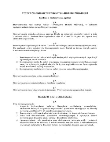 Statut PTHM - Polskie Towarzystwo Historii Mówionej