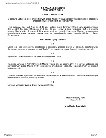 Uchwała XIX/332/16 Rady Miasta Tychy z dnia 31 marca 2016 r.