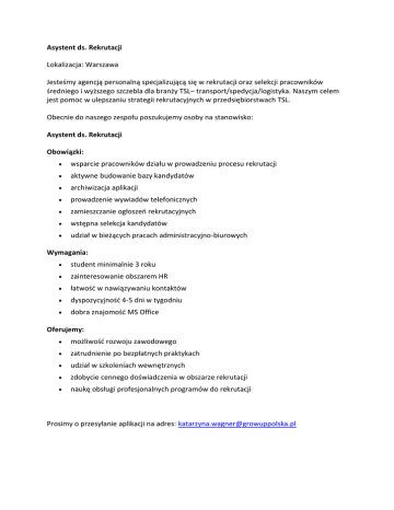 Asystent ds. Rekrutacji Lokalizacja: Warszawa