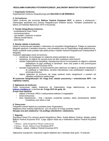 Regulamin konkursu - Balloon Festival Krzyżowa 2016