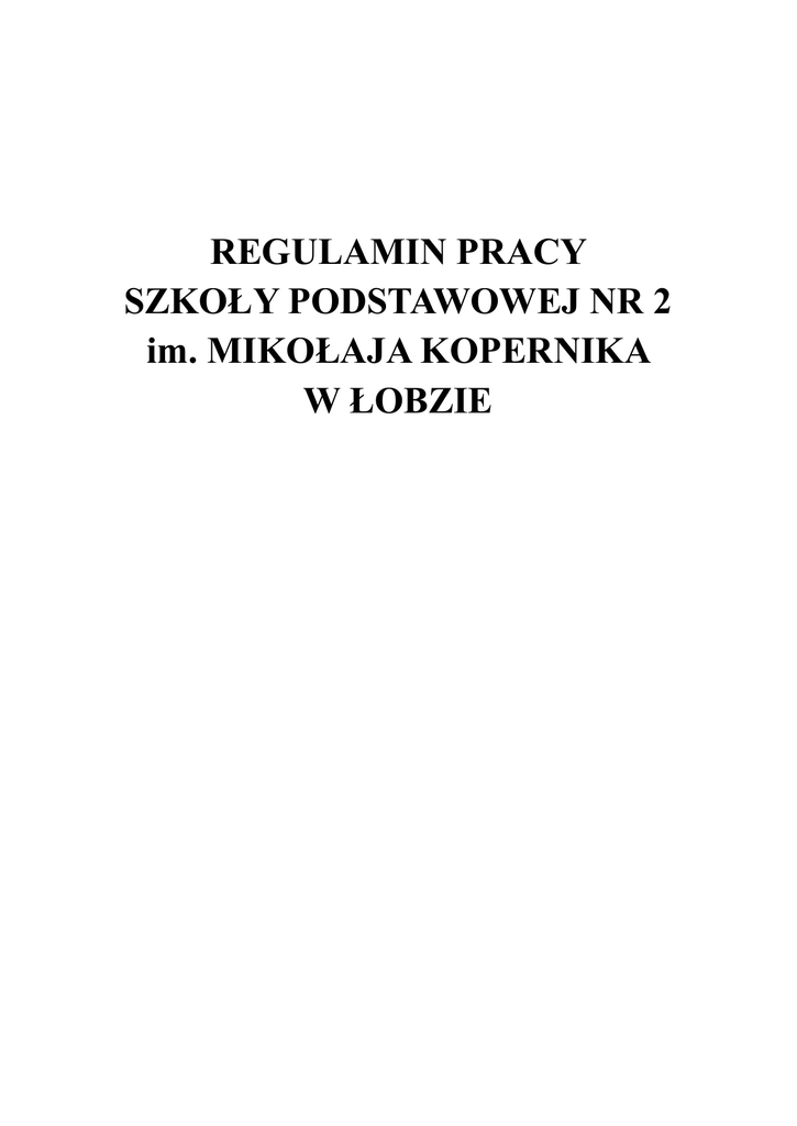 Regulamin pracy - Szkoła Podstawowa nr 2 w Łobzie