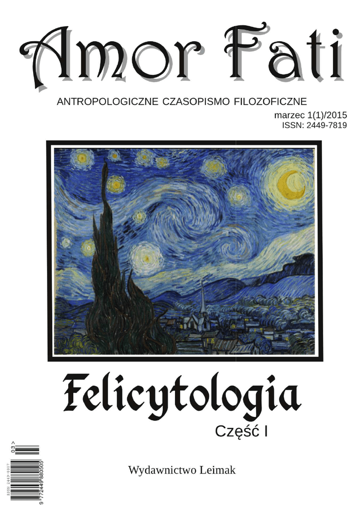 Felicytologia Felicytologia CZĘŚĆ I MARZEC 1 (1)/2015 ISSN: 2449-7819 AMOR FATI - antropologiczne czasopismo poświęcone filozofii człowieka, tzn. pytaniu o samego siebie Wydawnictwo Leimak Siemianowice Śląskie 2015 ISSN: 2449-8807 (DRUK) ISSN: 2449-7819 (ONLINE) REDAKTOR NACZELNY Kamil M. Wieczorek ZASTĘPCA REDAKTORA NACZELNEGO Adam Gindera ZESPÓŁ REDAKCYJNY Krzysztof Kornecki Łukasz Lot REDAKTORZY JĘZYKOWI - JĘZYKA ANGIELSKIEGO Mateusz Michalak REDAKCJA TECHNICZNA Kuba Grodzki SKŁAD I OPRACOWANIE GRAFICZNE Kamil M. Wieczorek ADRES REDAKCJI ul. Lampego 6/8 41-608 Świętochłowice [email protected] WYDAWCA Wydawnictwo Leimak ul. Wł. Jagiełły 25a 41-106 Siemianowice Śl. [email protected] RECENZENCI NUMERU - dr hab. Iwona AlechnowiczSkrzypek, prof. UO - dr Dariusz Bęben, UŚ - dr hab. Grzegorz Leszczyński, prof. UW - dr hab. Romuald Derbis, prof. UO i AJD - dr hab. Paweł Tański, UMK - dr hab. Stanisław Kijaczko, UO (artykuły i materiały zamieszczone w dziale „Varia” nie podlegają recenzji naukowej) __________________________ Propozycje artykułów do publikacji w formie krótkich abstraktów prosimy wysyłać na nasz adres e-mail (szczegółowe wytyczne znajdują się na naszej stronie internetowej). Redakcja oświadcza, że wersją pierwotną (referencyjną) pisma jest wersja elektroniczna, dostępna pod adresem: amorfaticzasopismo.wordpress.com Na okładce czasopisma wykorzystano obraz Vincentego van Gogha pt. Gwiaździsta noc (hol. De sterrennacht). __________________________ DRUK Drukarnia Advert ul. Krakowska 21 41-503 Chorzów SPIS TREŚCI Babcia ................................................................................................. 7 Wstęp.................................................................................................. 9 Artykuły ......................................................................................... 13 TOMASZ LERKA NIETZSCHEGO KONCEPCJA „PĘDU DO METAFORY” A SZCZĘŚCIE .................................................................................. 15 Szczęście............................................................................................ 29 * * * .................................................................................................. 29 ANNA MAŁGORZATA DREKO SZCZĘŚLIWOŚĆ CZŁOWIEKA MIERZONA STANEM JEGO WOLNOŚCI. CZŁOWIEK W SPOŁECZEŃSTWIE KAPITALISTYCZNYM ....................................................................................... 31 JOANNA ROŚ KRÓLEWSKIE PALMY, DRZEWA ŚWIĘTOJAŃSKIE, MIGDAŁOWCE W DOLINIE KONSULÓW… KILKA REFLEKSJI NA TEMAT ROŚLINNOŚCI W TWÓRCZOŚCI ALBERTA CAMUSA ......................................................................................... 51 Obrazkowiersz .................................................................................. 69 ARKADIUSZ M. JASIŃSKI CNOTY JAKO DYSPOZYCJE PSYCHICZNE I ICH WPŁYW NA JAKOŚĆ ŻYCIA WSPÓŁCZESNEGO CZŁOWIEKA .................. 71 5 ALEKSANDRA SZWAGRZYK (NIE)SZCZĘŚLIWY HAPPY END. O SZCZĘŚCIU W LITERATURZE DLA DZIECI I MŁODZIEŻY (NA PRZYKŁADZIE POWIEŚCI PANNA NIKT TOMKA TRYZNY) ............................ 97 Memento Mori: zu-życie ................................................................. 111 JAKUB OSIŃSKI AKSJOLOGICZNY CHARAKTER SZCZĘŚCIA W LITERATURZE, CZYLI O ZWIĄZKACH FELICYTOLOGII I ESTETYKI............................................................................................... 113 KAMIL M. WIECZOREK CZY EUGENIKA FELICYTOLOGICZNA JEST W OGÓLE MOŻLIWA? ................................................................................... 127 Analiza melancholii ........................................................................ 153 ADAM GINDERA CO PLATON I ARYSTOTELES MYŚLELI O SZCZĘŚCIU? ..... 155 Varia ............................................................................................... 169 EWA FABIAŃSKA-JELIŃSKA KATEGORIA FELICITAS W ŚWIETLE TWÓRCZOŚCI POLSKICH KOMPOZYTOREK ................................................... 171 6 Annais BABCIA ANNAIS1 BABCIA a po co mam płakać żeby mnie oczy bolały nie płacze w radosnych kurzych łapkach iskierki orzechowego spojrzenia krótkie rzęsy i srebro włosów trzymają się mocno już bym chciała umrzeć tylko jeszcze nie jutro przeszła już wszystkie wtajemniczenia bólu uparte ciało udowadnia że jeszcze istnieje śmierć chyba zgubiła do mnie adres śmieje się 1 W pseudonim Annais przebiera się literacko Anna Alochno-Janas, absolwentka kulturoznawstwa (Uniwersytet Śląski) i studiów z przekładu literackiego (Uniwersytet Jagielloński); obecnie (od 2013 r.) doktorantka literaturoznawstwa (Uniwersytet Śląski). Laureatka pięciu konkursów poetyckich (m.in. Laur Zawodziański, Zagłębiowski Pegaz, Konkurs im. Pawlikowskiej-Jasnorzewskiej) i konkursu translatorskiego. Publikowała m.in. w „SosnArt”, „Art Anons”, „ProArte”, Śląskiej Strefie Gender, Modowo.pl, w kilku monografiach pokonferencyjnych, m.in.: Fotografia. Spojrzenia literackie i filmowe (szkic Eros i Tanatos w fotografii) oraz Web 2.0 – szanse i zagrożenia (szkic W poszukiwaniu istoty blogowości), w antologii poetyckiej Nie noszę bransoletek oraz w Gorącej antologii. W latach 2004-2006 prowadziła e-magazyn literacki „Black & White SML”. Wydała e-booki: zbiór poezji Arachnologia oraz esej Samobójstwa literackie (e-bookowo, 2011). W 2012 roku wydała pierwszą książkę poetycką Arachnologia z posłowiem L. Żulińskiego (wyd. Miniatura, Kraków 2012). W roku 2012 była gościem Targów Książki w Katowicach. Pracuje jako redaktorka, tłumaczka oraz wykładowczyni akademicka. Mieszka w Sosnowcu. Strona autorska: www.annais.pl. Sylwetka zawodowa: www.arsverbi.pl. 7 Amor Fati MARZEC 1(1)/2015 – FELICYTOLOGIA zamknięta w celi mieszkania zakładniczka ciała dostała już swój wyrok wieku wcale mi się nie wydaje że mam tyle lat cierpliwie wysiaduje swoją starość