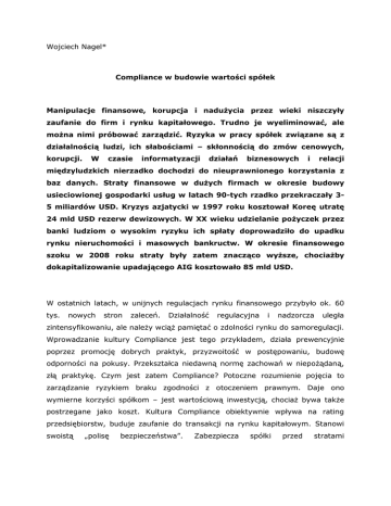 Wojciech Nagel* Compliance w budowie wartości