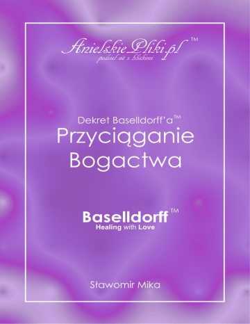 Sławomir Mika MoŜesz Rozdawać Ten Anielski Plik Swoim Przyjaciołom ☺ *** Dekrety Baselldorff’a™ to cudowne teksty, które mają moc uzdrawiania Ciebie i Twojego Ŝycia. Uzdrowienie dokonuje się poprzez przemianę Twoich wyobraŜeń. To Twoje wyobraŜenia kierują energią. Twoje zakorzenione wyobraŜenia są przyczyną materializacji wszystkiego, co w Tobie i co w Twoim Ŝyciu. Przemieniając swoje wyobraŜenia, przemieniasz swój świat. Aby Dekret był skuteczny naleŜy czytać go dwa razy dziennie przez co najmniej 90 dni. Pierwsze efekty pojawiają się często juŜ po kilku dniach. *** www.Baselldorff.pl Niniejsza publikacja moŜe być kopiowana oraz dowolnie rozprowadzana Tylko i wyłącznie w formie dostarczonej przez wydawcę. Zabronione są jakiekolwiek zmiany w jej zawartości. Wszelkie prawa zastrzeŜone. All rights reserved. Copyright © Sławomir Mika DEKRET Przyciąganie bogactwa Otwieram się na bogactwo. Otwieram się na pełne doświadczenie bogactwa i obfitości w kaŜdej dziedzinie mojego Ŝycia. Z radością otwieram się na wszystkie boŜe dary, bogactwa i błogosławieństwa. Jestem otwarty na wszystko, co Bóg ma dla mnie najlepszego. Jestem otwarty na doświadczanie prawdziwej radości i przyjemności w Ŝyciu. Z kaŜdym dniem pełniej uświadamiam sobie, Ŝe bogactwo i obfitość w kaŜdej dziedzinie mojego Ŝycia są dla mnie naturalne, więc przychodzą do mnie z łatwością i bez wysiłku. Uświadamiam sobie, Ŝe zasługuję by korzystać z całego bogactwa wszechświata. Zasługuję na wszystko co najlepsze, dlatego z radością przyciągam do siebie bogactwo w najpiękniejszym kształcie. JuŜ teraz pozwalam sobie na to, by Ŝyć w doskonałej obfitości. Z wielką radością uwalniam się od wysiłku i zabiegania o bogactwo, bo przecieŜ wszystko co najlepsze przychodzi do mnie z łatwością i bez wysiłku. Teraz widzę siebie jako osobę bogatą, szczęśliwą i radosną. Czuję się bogaty. Bawię i cieszę się Ŝyciem kaŜdego dnia. Akceptuję nieskończone bogactwo w sobie i swoim Ŝyciu. Moje bogactwo jest bezpieczne i niewinne. Jestem w porządku, kiedy cieszę się swoim bogactwem i otaczającą mnie obfitością, poniewaŜ jest ono korzystne dla mnie i całego świata. Im bogatszy jestem, tym bogatszy jest świat wokół mnie. Z radością odkrywam, Ŝe bogactwo w świecie jest nieskończone, więc wystarczy go dla kaŜdego. Dlatego z pełnym poczuciem niewinności i bezpieczeństwa pozwalam sobie korzystać z nieskończonego bogactwa wszechświata. KaŜdego dnia doskonale bawię się Ŝyciem i mam z tego mnóstwo pieniędzy. Oto prezenty dla Ciebie ☺ Pobierz Darmową Muzykę - www.AnielskiePliki.pl/muzyka Pobierz Darmowe Tapety Afirmacyjne - www.AnielskiePliki.pl/tapety Pobierz Darmowe Dekrety - www.AnielskiePliki.pl/dekrety www.baselldorff.pl Sławomir Mika Telefon: 887 62 62 00 e-mail: [email protected] strona: www.Baselldorff.pl www.AnielskiePliki.pl www.SlawomirMika.pl www.blog.SlawomirMika.pl