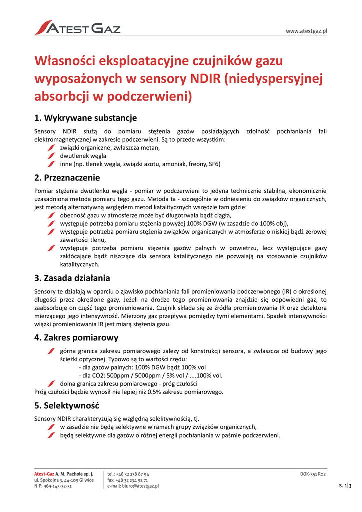 Własności eksploatacyjne czujników gazu - Atest-Gaz
