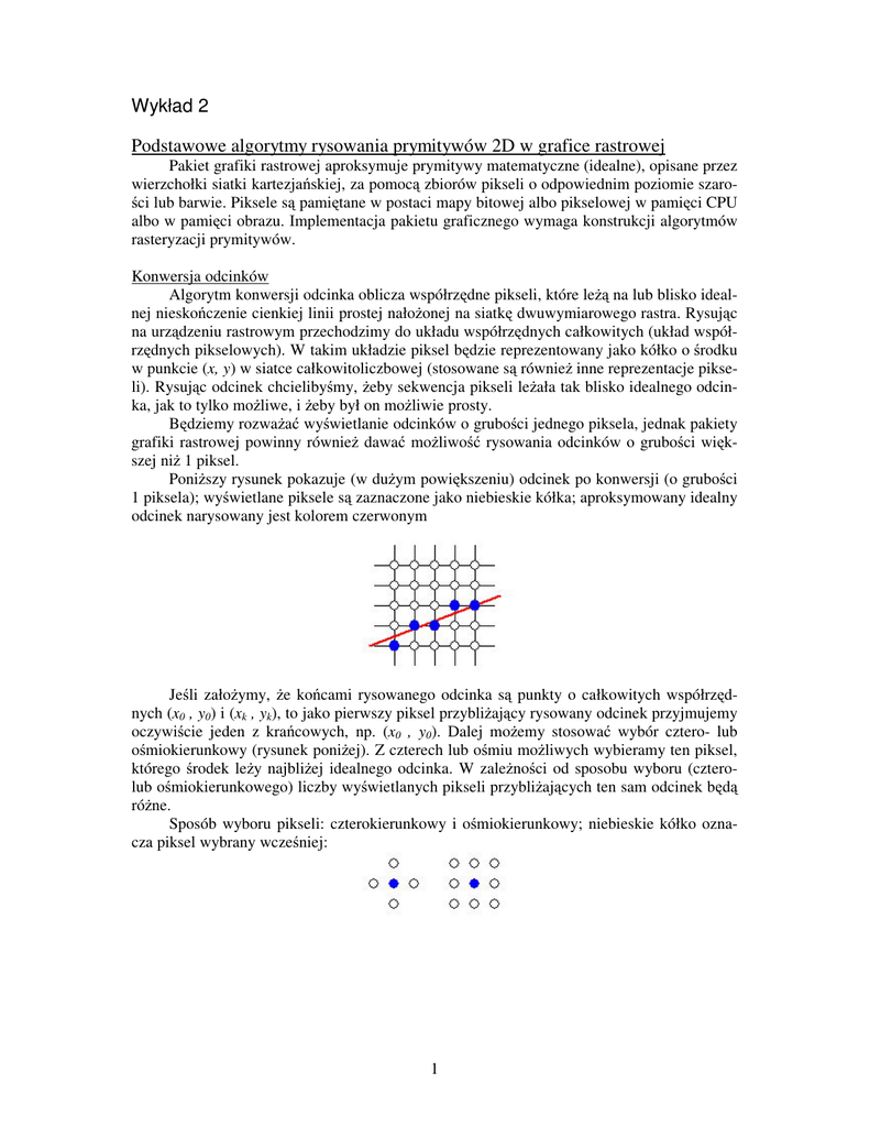 Wykład 2 Podstawowe algorytmy rysowania prymitywów 2D w