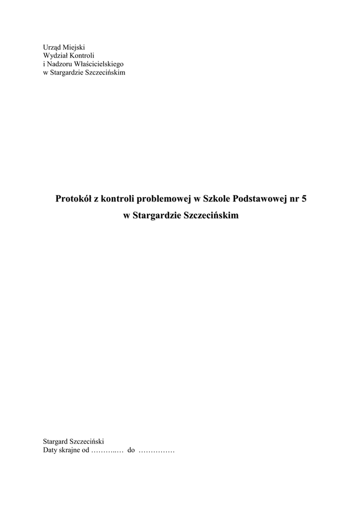 Urząd Miejski Wydział Kontroli i Nadzoru Właścicielskiego w Stargardzie Szczecińskim Protokół z kontroli problemowej w Szkole Podstawowej nr 5 w Stargardzie Szczecińskim Stargard Szczeciński Daty skrajne od ………..… do …………… Urząd Miejski w Stargardzie Szczecińskim Wydział Kontroli i Nadzoru Właścicielskiego MK.1712.30.2012.2.4 - do użytku zewnętrznego - Protokół z przeprowadzonej kontroli problemowej w Szkole Podstawowej nr 5 w Stargardzie Szczecińskim w okresie od 29 listopada 2012 roku do 14 grudnia 2012 roku przez podinspektora Wydziału Kontroli i Nadzoru Właścicielskiego Urzędu Miejskiego w Stargardzie Szczecińskim i podinspektora Wydziału Kontroli i Nadzoru Właścicielskiego Urzędu Miejskiego w Stargardzie Szczecińskim działających na podstawie upoważnienia nr 47/2012 Prezydenta Miasta Stargard Szczeciński z dnia 27 listopada 2012 roku. Zakres kontroli: 1. Gospodarka finansowa jednostki z uwzględnieniem wykorzystania i rozliczenia środków na wydatki budżetowe w wybranych okresach 2012 roku. 2. Przeprowadzenie i rozliczenie inwentaryzacji. Dyrektorem Szkoły Podstawowej nr 5 jest Włodzimierz Owczarek, któremu Prezydent Miasta Zarządzeniem nr 200/2009 z dnia 03 czerwca 2009 roku powierzył stanowisko Dyrektora Szkoły Podstawowej nr 5 w Stargardzie Szczecińskim na okres od 01 września 2009 roku do 31 sierpnia 2014 roku. Główną księgową jest Anna Majerczyk zatrudniona od 01 lipca 2000 roku na podstawie umowy o pracę w pełnym wymiarze czasu pracy. W trakcie kontroli wyjaśnień udzielała: Anna Majerczyk - Główna Księgowa 2 Podstawy formalno - prawne funkcjonowania jednostki: 1. Ustawa z dnia 08 marca 1990 r. o samorządzie gminnym (Dz.U. z 2001 r. Nr 142, poz.1591 z pózn. zm.). 2. Ustawa z dnia 27 sierpnia 2009 r. o finansach publicznych (Dz.U. Nr 157, poz. 1240 z pózn. zm.). 3. Ustawa z dnia 29 września 1994 r. o rachunkowości (Dz.U. z 2009 r. Nr 152, poz. 1223 z pózn. zm.). 4. Ustawa z dnia 26 stycznia 1982 r. Karta nauczyciela (Dz.U. z 2006 r. Nr 97, poz. 674 z pózn. zm.). 5. Ustawa z dnia 07 września 1991 r. o systemie oświaty (Dz.U. z 2004 r. Nr 256, poz. 2572 z pózn. zm.). 6. Statut Szkoły Podstawowej nr 5 im. Jana Pawła II w Stargardzie Szczecińskim. BUDŻET 1. Gospodarka finansowa z uwzględnieniem wykorzystania i rozliczenia środków na wydatki budżetowe w wybranych okresach 2012 roku. Na podstawie zarządzenia Nr 09/2012 Prezydenta Miasta Stargard Szczeciński z dnia 10 stycznia 2012 roku w sprawie ustalenia szczegółowego planu dochodów i wydatków budżetu miasta na 2012 rok sporządzono plan dochodów i wydatków Szkoły Podstawowej nr 5 w Stargardzie Szczecińskim. Plan po zmianach (ostatnia z dnia 27.09.2012 r.) Prezydent Miasta Stargard Szczeciński zatwierdził uchwałą Rady Miejskiej nr 380/2012 z dnia 27 września 2012 roku. Temat sprawdzono w oparciu o dokumenty źródłowe tj.: raporty kasowe, wyciągi bankowe, faktury VAT, rachunki, polecenia wyjazdu służbowego, urządzenia księgowe i sprawozdawczość. Szczegółowy wykaz z podziałem na działy, rozdziały i paragrafy przedstawia poniższa tabela, która została opracowana w oparciu o plan dochodów i wydatków na 2012 rok, ewidencję księgową oraz sprawozdania Rb-27S i Rb-28S za III kwartał 2012 roku. Ogółem wydatki budżetowe szkoły za III kwartał 2012 roku osiągnęły poziom 1.229.695,65 zł, co stanowiło 23,00% ogółu zaplanowanych wydatków na 2012 rok. Największa kwota, tj.: 1.083.754,20 zł przypadła na wynagrodzenia osobowe pracowników i ich pochodne, stanowiąc 88,13 % ogólnych wydatków w tym okresie, odpis na Zakładowy Fundusz Świadczeń Socjalnych w kwocie 65.615,00 zł stanowił 5,34% ogólnych wydatków, wydatki inwestycyjne jednostki w kwocie 44.314,33 zł stanowiły 3,60% ogólnych wydatków, zakup energii, usług zdrowotnych i pomocy dydaktycznych w kwocie 33.994,52 zł stanowił 2,76 % ogólnych wydatków, a podróże służbowe i wydatki osobowe w kwocie 2.017,60 zł stanowiły 0,16% ogólnych wydatków. § Wyszczególnienie Plan na 2012 rok Wydatki za III kwartał 2012 r. % Dział 801 5.031.090,00 1.170.030,26 23,26 Rozdział 80101 4.972.363,00 1.159.432,66 23,32 3 3020 4010 4040 4110 4120 4210 4240 4260 4270 4280 4300 4350 4370 Wydatki osobowe niezaliczone do wynagrodzeń Wynagrodzenia osobowe Dodatkowe wynagrodzenie roczne Składki na ubezpieczenia społeczne Składki na Fundusz Pracy Zakup materiałów i wyposażenia Zakup pomocy naukowych, dydaktycznych i książek Zakup energii Zakup usług remontowych Zakup usług zdrowotnych Zakup usług pozostałych Zakup usług dostępu do sieci Internet Opłaty z tytułu zakupu usług telekomunikacyjnych świadczonych w stacjonarnej publicznej sieci telefonicznej 4440 Odpisy na Zakładowy Fundusz Świadczeń Socjalnych 6050 Wydatki inwestycyjne jednostek budżetowych Rozdział 80146 1.999,00 868.207,53 0,00 140.444,41 19.036,87 8.638,60 315,02 33.105,50 0,00 574,00 9.511,73 623,61 600,00 205.827,00 25.000,00 22,21 24,66 0,00 23,70 20,02 86,39 15,75 15,53 0,00 19,13 33,97 99,78 540,39 90,07 51.436,00 24,99 25.000,00 100,00 12.500,00 18,60 0,15 2.000,00 2.000,00 0,00 18,60 0,00 0,93 8.500,00 0,00 0,00 46.227,00 10.579,00 22,88 800,00 2.600,00 447,00 64,00 42.316,00 0,00 0,00 0,00 0,00 10.579,00 0,00 0,00 0,00 0,00 25,00 Dział 854 316.216,00 59.665,39 18,87 Rozdział 85401 268.280,00 59.665,39 22,24 Wynagrodzenia osobowe Dodatkowe wynagrodzenie roczne Składki na ubezpieczenia społeczne Składki na Fundusz Pracy Odpisy na ZFŚS 202.544,00 14.772,00 31.486,00 5.078,00 14.400,00 46.913,49 0,00 7.993,24 1.158,66 3.600,00 23,16 0,00 25,39 22,82 25,00 47.936,00 0,00 0,00 2.700,00 45.236,00 0,00 0,00 0,00 0,00 5.347.306,00 1.229.695,65 23,00 4300 Zakup usług pozostałych 4410 Podróże służbowe krajowe 4700 Szkolenia pracowników niebędących członkami korpusu służby cywilnej Rozdział 80195 3040 Nagrody o charakterze szczególnym wynagrodzeń 40
