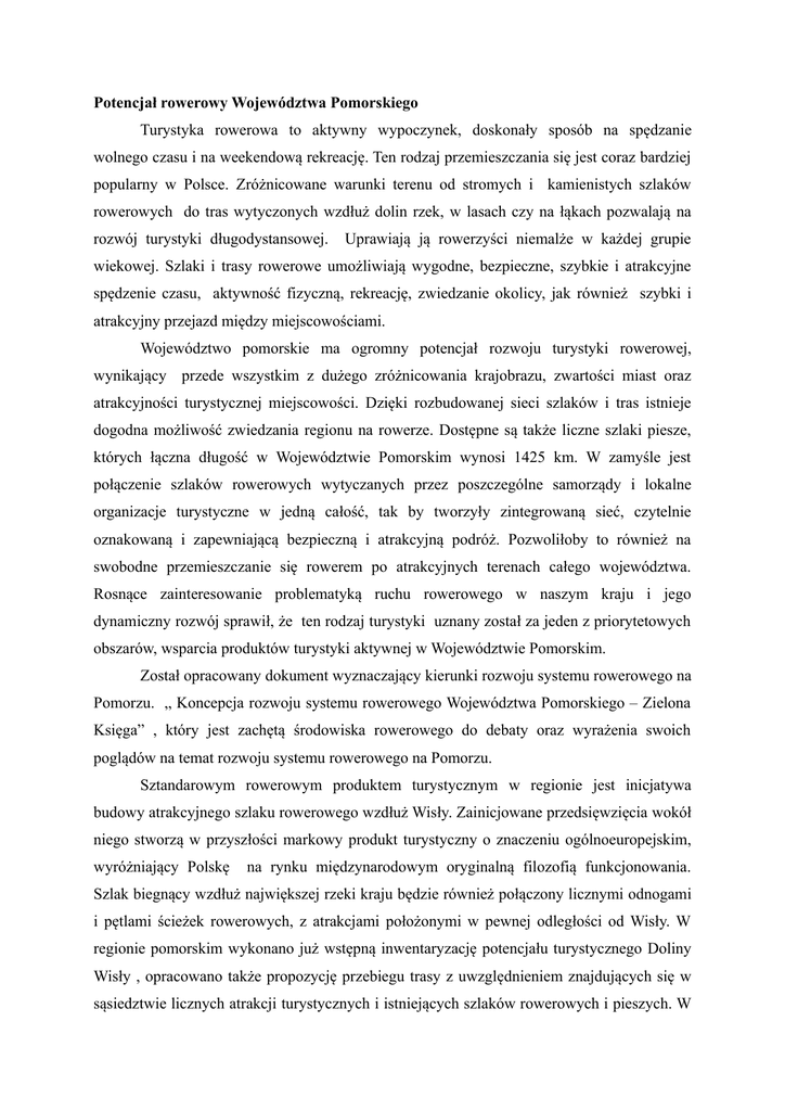 Potencjał rowerowy Województwa Pomorskiego Turystyka