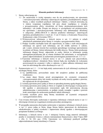 Załącznik nr 4 - Klauzula poufności informacji i
