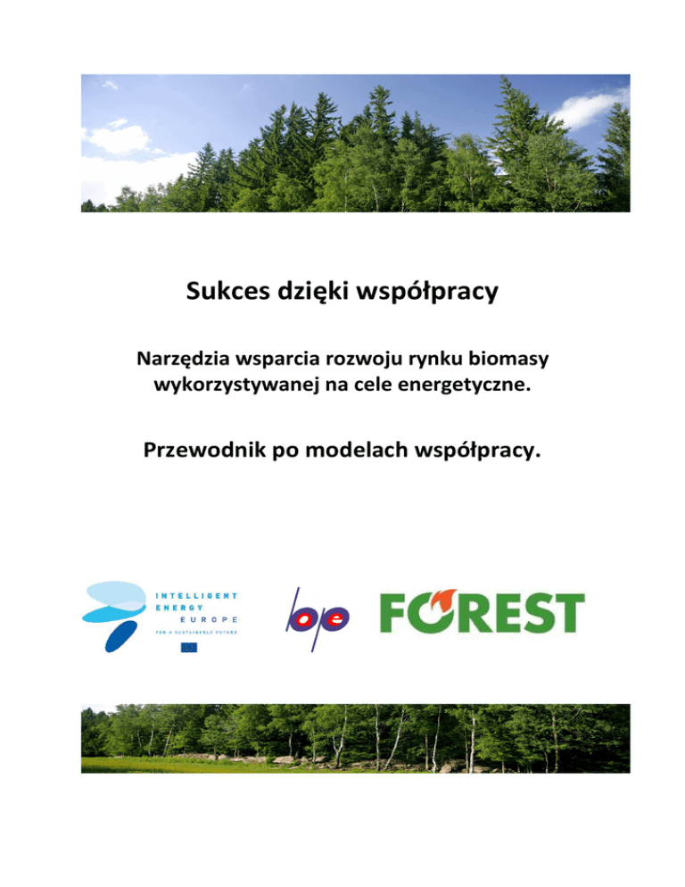 Sukces dzięki współpracy Narzędzia wsparcia rozwoju rynku biomasy wykorzystywanej na cele energetyczne. Przewodnik po modelach współpracy. Spis treści Wstęp ......................................................................................................................................... 3 Współpraca w zakresie dostaw paliwa ...................................................................................... 4 Współpraca w zakresie dostaw urządzeń ................................................................................ 11 Rozwiązania zintegrowane ....................................................................................................... 15 Dalsze kroki .............................................................................................................................. 23 Przewodnik ten został opracowany w ramach projektu FOREST, przy wsparciu programu Inteligentna Energia dla Europy. Przewodnik jest dostępny pod adresem: www.forestprogramme.com. Autorzy O.Ö. Energiesparverband, Austria Bałtycka Agencja Poszanowania Energii S.A. Wyłączna odpowiedzialność za treść niniejszych publikacji leży po stronie ich autorów. Publikacje nie odzwierciedlają opinii Wspólnot Europejskich. Komisja Europejska nie jest odpowiedzialna za jakiekolwiek wykorzystanie informacji w nich zawartych. Forest – Przewodnik po modelach współpracy – BAPE S.A. 2 Wstęp Niezbędnym elementem na drodze do stworzenia pomyślnie funkcjonującego, zrównoważonego rynku ciepła z biomasy jest zaufanie klienta do całego łańcucha dostaw począwszy od paliwa, przez instalację wysoce sprawnego, niezawodnego urządzenia grzewczego, aż do jego bieżącej eksploatacji. Bez tego zaufania, biomasa będzie uczestniczyć w nierównym współzawodnictwie z paliwami kopalnymi, które mają dobrze zbudowane łańcuchy dostaw o wieloletniej tradycji. Przewodnik ten ma pomóc w umocnieniu relacji biznesowych istniejących wzdłuż łańcucha dostaw biomasy. Zakres tematyczny Przewodnika koncentruje się wzdłuż łańcucha dostaw biomasy i ma na celu zapewnienie odpowiednich wskazówek i informacji dla: • przedsiębiorców zainteresowanych dostarczaniem usług i produktów w sektorze ciepła z biomasy, w zakresie mocy urządzeń 100 kW- 10 MW; • deweloperów i właścicieli budynków zainteresowanych urządzeniami grzewczymi na biomasę, na potrzeby budynków znajdujących się w ich posiadaniu, zarządzaniu lub których utrzymanie znajduje się w zakresie odpowiedzialności wymienionych podmiotów; • szeroko pojętych uczestników rynku zainteresowanych efektywnymi łańcuchami dostaw i współpracą w sektorze ciepła z biomasy. Łańcuch dostaw ciepła z biomasy został zilustrowany na poniższym rysunku, uwzględnione na nim modele współpracy i zawieranych umów można pogrupować w następujący sposób: • współpraca w zakresie dostaw paliwa; • współpraca w zakresie dostaw urządzeń; • rozwiązania zintegrowane (regulujące zarówno kwestie dostaw paliwa jak i urządzeń). Forest – Przewodnik po modelach współpracy – BAPE S.A. 3 W ramach każdej z wymienionych trzech grup zidentyfikowano i opisano najczęściej występujące modele współpracy. W przewodniku zamieszczono listy kontrolne zagadnień, które powinny zostać uwzględnione w umowach zawieranych przez partnerów biznesowych, oraz przykłady uregulowania tychże. Uzupełnieniem powyższych informacji są opisy rzeczywistych przykładów współpracy, ukazujące możliwe do osiągnięcia efekty. Informacje zawarte w przewodniku powinny być wykorzystane jako szkielet, przy nawiązywaniu współpracy wzdłuż łańcucha dostaw i zawieraniu umowy biznesowej. Ważnym jest, aby pamiętać o uwzględnieniu w umowie własnych decyzji i rozwiązań, odpowiadających specyficznym lokalnym uwarunkowaniom i stopniowi dojrzałości rynku. Przewodnik ten został opracowany w ramach projektu FOREST. Celem projektu jest bezpośrednia współpraca z przedsiębiorcami z sektora biomasy, rozwój i umocnienie modeli współpracy wzdłuż łańcucha dostaw, co wpłynie na wzrost zaufania użytkownika końcowego do technologii i pobudzenie inwestycji ze strony dużych odbiorców ciepła. Pod nazwą projektu FOREST ukrywa się hasło: „FOsteRing Efficient long term Supply partnerships”, czyli „Rozwijanie efektywnych długoterminowych powiązań w dostawach biomasy”. Projekt jest wspierany przez Komisję Europejską w ramach programu Inteligentna Energia dla Europy (IEE). Dokładne informacje na temat projektu oraz narzędzia opracowane w ramach projektu można znaleźć na stronie: www.forestprogramme.com. Projekt jest realizowany przez partnerów z siedmiu regionów: Austrii, Irlandii, Włoch, Polski, Hiszpanii, Szwecji i Wielkiej Brytanii. Głównym przedmiotem zainteresowań jest wykorzystanie biomasy na cele grzewcze w kotłowniach większych niż indywidualne w domach, o zakresie mocy 100 kW-10 MW, oraz w małych i średnich elektrociepłowniach i lokalnych ciepłowniach o mocy do 10 MW. Rodzaje paliw z biomasy objętych programem to pelety i brykiety, zrębki drzewne, drewno odpadowe i plantacje energetyczne. Współpraca w zakresie dostaw paliwa Najbardziej popularny model współpracy to umowa zawierana między dostawcą paliwa, a końcowym użytkownikiem, mająca na celu zabezpieczenie dostaw paliwa o określonej wielkości, jakości i cenie dla danej instalacji. Mniej popularnym, lecz pomocnym modelem współpracy są umowy zawierane na wykonanie konkretnych usług w sektorze leśnym. Umowy między dostawcami paliwa i użytkownikami końcowymi Umowa dotycząca dostaw paliwa, zawierana między dostawcą, a użytkownikiem końcowym ma zapewnić poczucie bezpieczeństwa obu stronom i jej zakres powinien pokrywać następujące zagadnienia: Zobowiązania po stronie dostawcy: • ilość i jakość dostarczanego paliwa, • lokalizacja dostawy, częstotliwość i pora, • kary za nie