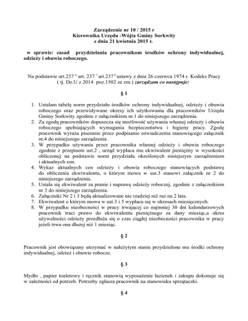 Zarządzenie nr 10 / 2015 r