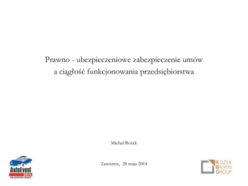 Prawno - ubezpieczeniowe zabezpieczenie umów a ciągłość funkcjonowania przedsiębiorstwa Michał Rożek Zawiercie, 28 maja 2014 Plan roszczenia odszkodowawcze kontrahentów związane z wadliwością dostarczonego produktu/usługi jako kluczowe ryzyko decydujące o stabilności funkcjonowania dostawcy inne produkty ubezpieczeniowe zabezpieczające ciągłość funkcjonowania przedsiębiorstwa działającego w sektorze automotive Czynniki kluczowe wzrostu ryzyka roszczeń odszkodowawczych w sektorze automotiv globalizacja i rozproszenie w produkcie finalnym dziesiątki tysięcy sztuk produktów w dużych seriach o niskiej wartości jednostkowej rosnące koszty pracy rosnące zaangażowanie w wytworzenie produktu rosnąca roszczeniowość konsumentów oraz ich prawna ochrona zmienność otoczenia prawnego oraz intensyfikacja zachowań regulatorów w zakresie bezpieczeństwa produktów rosnąc konkurencja w sektorze rotacja nowych modeli samochodów strach przed utratą dobrego imienia, marki rosnące zaawansowanie technologiczne produktów wydłużenie i zwiększenie złożoności łańcucha dostaw produkcja „just in time” błyskawicznie reagujące media częsta niewspółmierność ekonomiczna zlecającego i dostawcy tendencja do przenoszenia obowiązków i odpowiedzialności na poddostawcę Szacuje się że wycofanie produktu motoryzacyjnego kosztuje minimum pięciokrotnie więcej niż jego dystrybucja! Recall prawnie a ubezpieczeniowo każdy z poniższych kosztów jaki powstał: na każdym etapie w łańcuchu dostaw w tym u kolejnych producentów (w tym produktu finalnego), odbiorców, dystrybutorów oraz konsumentów każdy z nich może wystąpić samodzielnie w tym jako koszt własny jak i osoby trzeciej wycofania przeprowadzonego decyzją podmiotu jak i nakazane przez właściwego regulatora rynku zarówno przy istnieniu przesłanki zagrożenia szkodą osobową jak i nie. koszty które mogą być pokryte: związane z ogłoszeniami i publikacjami w mediach, redystrybucji, zniszczenia, naprawy, odzysku i przechowania, demontażu i ponownego zamontowania, transportu, sortowania i przepakowania, badania wadliwego produktu etc. dodatkowo możliwe: rozszerzenie o utratę zysku osoby trzeciej, ewentualnie koszty przywrócenia udziału w rynku po szkodzie inne świadczenia w ramach istniejącej ochrony: ochrona prawna + jurysdykcja światowa Kluczowe czynniki kontraktowe wpływające na ryzyko jurysdykcja (właściwość prawa materialnego i sądu lub innego organu na które strony się umówiły) kontraktowe kształtowanie odpowiedzialności odszkodowawczej rękojmiowej i gwaranycjnej obowiązki ubezpieczeniowe stawiane przez kontrahentów wymagane pokrycie i jego adekwatność oraz dostępność ochrona kontrahenta w polisie (współubezpieczenie, wyłączenie prawa regresu) oszacowanie kosztów pozostałe kary umowne zapisy dotyczące sposobu likwidacji szkody oraz ryczałtowe ich koszty, klauzule z góry określające % udział dostawcy w kosztach wycofania niezależnie od stopnia przyczynienia, ograniczenia dowodowe po stronie zlecających Kluczowe czynniki wpływające na ekspozycję na ryzyko stopień wpływu na bezpieczeństwo dostarczanych usług/produktów identyfikowalność produktu oraz lebeling, instrukcje wolumeny, długości serii, partii stosowana kontrola jakości stopień przetwarzania produktu opracowanie, wdrożenie, testowanie planu wycofania produktu z rynku stałość współpracy z kontrahentem posiadane certyfikaty i wdrożone systemy jakości miejsce w łańcuchu dostaw portfel kontrahentów (rozproszony/skoncentrowany) jakość dokumentowania produkcji wprowadzanie nowych produktów postępowania reklamacyjne i historia szkodowa etc. Do przyjęcia ryzyka każdorazowy indywidualny underwriting w oparciu o powyższe czynniki - w szczególnych przypadkach przeprowadzany jest survey produktowy Możliwości plasowania ryzyka automotive recall – rynek polski mała liczba ubezpieczycieli przyjmujących ryzyko (4) oraz wyspecjalizowanych brokerów plasujących tego typu ryzyka niskie nasycenie polisami, małe portfele ubezpieczycieli o charakterze niezrównoważonym (kilka „kominowych” rachunków) ubezpieczyciele w Polsce przyjmują to ryzyko na reasekuracji fakultatywnej lub przynajmniej z akceptacją case by case przez reasekuratorów mała porównywalność oferowanych rozwiązań – implementacja rozwiązań z innych rynków dostępne pojemności do 10M€ na jednego ubezpieczyciela (możliwe koasekuracje dla większych limitów lub korzystanie z pojemności spółek z grupy kapitałowej) oferta spełnia wymagania kontrahentów z Europy kontynentalnej zwłaszcza niemieckich Możliwości plasowania ryzyka automotive recall – rynek Lloyds wysokie limity i/lub pokrycie nadwyżkowe nastawienie na większe ryzyka z dużym ich rozproszeniem na różne syndykaty polisy wystawiane za granicą na zasadzie freedom of service rozwiązania preferowane przez kontrahentów z kapitałem anglosaskim Możliwości plasowania ryzyka automotive recall pokrycie automotive recall oferowane jest z reguły jako dodatek w ramach polis OC ogólnego z rozszerzeniem o odpowiedzialność cywilną za produkt lub jako polisy stand alone możliwe są umowy ubezpieczenia obrotowe (roczne) lub „pod kontrakt” zarówno dla pojedynczego przedsiębiorstwa lub grupy kapitałowej jak i programy dla grup firm Inne zabezpieczenia finansowo - ubezpieczeniowe ubezpieczenie odpowiedzialności cywilnej w tym za produkt i wykonaną usługę możliwa ochrona dla spółek zagranicznych grupy w ramach programu międzynarodowego IP (international program) ubezpieczenia majątkowe i transportowe z elementami utraty zysku i pokrycia kosztów stałych funkcjonowania przedsiębiorstwa w okresie odszkodowawczym PD BI (bussines interaption) MB MLoP (machinery loss of profit) CAR/EAR ALoP (advance loss of profit) EEI EELoP (electronic equipment loss of profit) CARGO MDSU (marine deley in start up) ubezpi