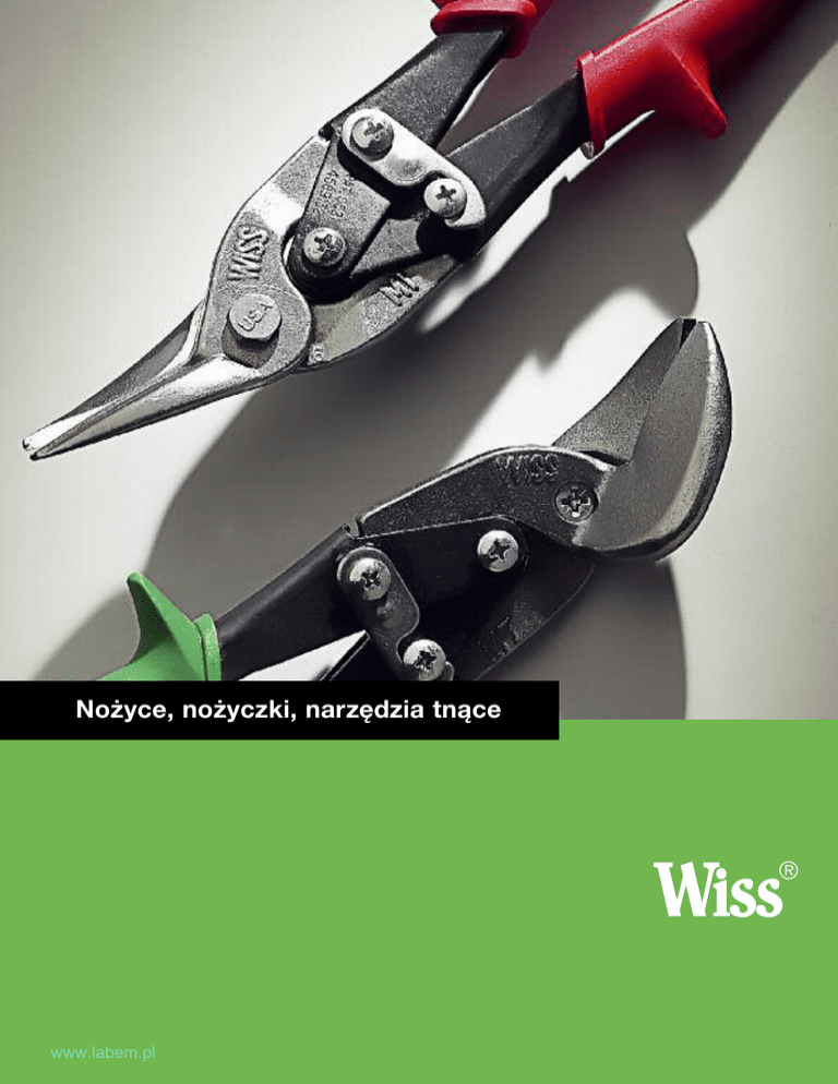 Nożyce, nożyczki, narzędzia tnące www.labem.pl Wiss® Spis Treści Spis treści Strona nr Nożyce Wprowadzenie ® Metalmaster Nożyce o złożonym działaniu Metal-Wizz® Nożyce Przecinaki wielofunkcyjne 209 210–213 213 213 Nożyce odkuwane ze stali podwójnie hartowanej 214 –215 Narzędzia do ogrzewania, wentylacji i klimatyzacji (HVAC) 216–218 Nożyce wielofunkcyjne i nożyce do kabli 219 Nożyczki domowe i nożyce przemysłowe 220 –222 Nożyce przemysłowe do prac ciężkich 222 Nożyce do tapicerki, dywanów, firan i materiałów 222 Quick-Clip® nożyce do szybkiego cięcia i do nici przemysłowych 223 Wiss® Indeks numeryczny Objaśnienie symboli Długość nacięcia 208 www.labem.pl 239 NOŻYCE Metalmaster ® Nożyce o złożonym działaniu Linia Wiss® nożyc Metalmaster® o złożonym działaniu jest najkompletniejszą linią na rynku. Nożyce Metalmaster® są najbardziej zaawansowanym ogólnodostępnym metalowym narzędziem tnącym. Początkowo zaprojektowane do cięcia niezwykle mocnych stopów stosowanych w przemyśle lotniczym, (stąd wcześniej używana nazwa nazwa „Nożyce lotnicze”), nożyce Metalmaster® zyskały popluraność wśród rzemieślników pracujących z metalem. Nożyce linii Wiss® Metalmaster® są używane przez rzemieślników domowych i zawodowców wykonujących prace w metalu i blasze, wytwarzaniu przewodów cieplnych i chłodzących oraz przy instalacji aluminiowej. Nożyce Wiss® Metalmaster® są niezastąpionym narzędziem dla właścicieli domów i konserwatorów jak i dla pracowników przemysłowych gdzie mają zastosowanie w przemyśle lotniczym, samochodowym, elektrycznym i budowlanym. To wszechstronność nożyc Wiss® Metalmaster®, oprócz ich zalet tnących, uczyniła je narzędziem tak bardzo popularnym. Nożyce Wiss® Metalmaster® tną przy wykorzystaniu połowy wysiłku wymaganego w przypadku standardowych nożyc i z łatwościa radzą sobie nawet z cięższymi pracami. Przy ich pomocy istnieje możliwość cięcia ostrych kątów, skomplikowanych wzorów i dokadnych kół o małej średnicy w stali galwanizowanej o grubości do 18 gauga (0,049" / 1,22 mm). Model nożyc M5R jest zalecany do grubości 16 (0,065" / 1,65 mm). Szczęki nożyc Wiss® Metalmaster® wykonane są z bardzo twardej i odpornej na ścieranie stali molibdenowej w celu zapewnienia większej siły cięcia wymaganej przez złożony mechanizm blacharskich z siłą dźwigniowy, jak również aby wytrzymały one silne napięcie przy cięciu grubego materiału lub ciasnych zagięć. Nożyce M41R do cięcia rur i kanałów zostały specjalnie zaprojektowane do przemysłu grzewczego oraz klimatyzacyjnego. Nożyce te charakteryzują się nie tylko złożonym mechanizmem dźwigniowym, ale dodatkowo mechanizmem łozyska kólkowego w szczękach, które automatycznie regulują luz łopatkowy w celu zapewnienia bardziej kwadratowego, czystszego cięcia. Tną bez odkształcania krawędzi. Wiss® MultiMaster® łączy w sobie długie cięcie nożyc złożonego działania. To działanie zwielokrotnia siłę ręki o 5 razy. To doskonałe narzędzie do wykonywania szybkich cięć w różnego rodzaju materiałach takich jak: papier, plastik, blacha metalowa, aluminium, elewacja winylowa oraz osłony. Wiss® MultiMaster® tnie stal do grubości 20 gauga.Produkt Wiss® MultiMaster® charakteryzuje się antypoślizgowymi ząbkowanymi szczękami i antypoślizgowymi teksturowanymi uchwytami. Tabela doboru nożyc W celu odnalezienia odpowiednich nożyc spełniających Twoje wymagania, sprawdź poniższą tabelę. Dające się zastosować nożyce zostały tam wymienione. Metalmaster M1R, M2R M3R, & M300 M6R, M7R Majsterkowicz • • Dekarz • • Mechanik • • Blacharz samochodowy • • Hydraulik • • Specjalista od ogrzewania i klimatyzacji • • Elektryk • • Nauczyciele zawodu • • Konserwator • • NOŻYCE WISS PRZEZNACZONE DO PRAC SPECJALNYCH Nadcinanie i cięcie nożycami wibracyjnymi Cięcie zagięć • • Nożyce z możliwością podwójnego cięcia www.labem.pl M41R • • • Nożyce seria B • • • • • • • • • MPC3 • Metalmaster M5R Metalmaster Serie specjalne M1RS1 & M2RS1 • • • • 209 NOŻYCE Metalmaster ® Nożyce o złożonym działaniu • Antypoślizgowe ząbkowane szczęki nożyc Wiss® Metalmaster® sa wykonane z bardzo twardej, odpornej na ścieranie stali molibdenowej, zapewniając obsługę wymaganą przez złożony mechanizm dźwigniowy. • Narzędzie przetrwa silne naprężenie powstające podczas cięcia materiałów twardych oraz mocnych zakrzywień. • Uchwyty wykonane są z bardzo wytrzymałej stali. • Uchwyty posiadają margines siły ponad limitem siły ręki, która może być zastosowana. Poręczny, ochronny zatrzask bezpieczeństwa Antypoślizgowe, teksturowane uchwyty dla wzmocnienia kontroli, bezpieczeństwa i wygody. Samootwierający się mechanizm zapewniający szybki, wygodny posuw. Uchwyty zaznaczone kolorem dla łatwiejszej identyfikacji Metalmaster ® Nożyce o złożonym działaniu Cięcie lewostronne, tnie od lewej od mocnych zakrzywień do prostych linii M 1R 210 Cięcie prawostronne, tnie od prawej od mocnych zakrzywień do prostych linii M2R Kod nr Kolor uchwytu Długość Inch mm Inch mm Zalecana max. objętość stal walcowana na zimno z niską zawartością węgla Opak. Waga oz g Pakowanie M1R Czerwony 9 3/4 248 1 3/8 35 Rozmiar Stali (0,049"/1,22mm) 84 2381 6 M2R Zielony 9 3/4 248 1 3/8 35 Rozmiar Stali (0,049"/1,22mm) 84 2381 6 www.labem.pl NOŻYCE Metalmaster ® Nożyce o złożonym działaniu • Cięcie proste, lewostronne lub prawostronne i materiałach lekkich. • Idealne dla rzemieślników Kod nr M3R Kolor uchwytu Żółty Długość Inch mm Inch 9 3/4 1 248 1/ 2 mm Zalecana max. objętość stal walcowana na zimno Opak. Waga oz g Pakowanie 38 Rozmiar stall (0,049"/1,22 mm) 84 2381 6 Metalmaster ® Nożyce offsetowe • Model M6R wykonuje cięcia lewostronne i proste.