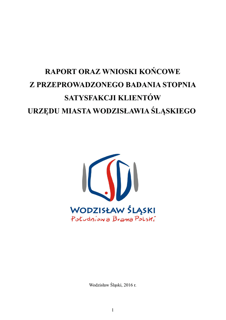 RAPORT ORAZ WNIOSKI KOŃCOWE Z PRZEPROWADZONEGO BADANIA STOPNIA SATYSFAKCJI KLIENTÓW URZĘDU MIASTA WODZISŁAWIA ŚLĄSKIEGO Wodzisław Śląski, 2016 r. 1 I. INFORMACJE WSTĘPNE Realizując projekt pn. „Ku nowoczesnej administracji samorządowej w jednostkach samorządu terytorialnego z terenu Subregionu Zachodniego Województwa Śląskiego” w Urzędzie Miasta Wodzisławia Śląskiego, w dniach od 1 kwietnia 2016 roku do 31 maja 2016 roku, zostało przeprowadzone badanie stopnia satysfakcji klientów Urzędu Miasta Wodzisławia Śląskiego. Organizacja badania polegała na udostępnieniu formularza ankietowego w formie papierowej we wszystkich komórkach organizacyjnych Urzędu i ogólnodostępnych miejscach budynków Urzędu Miasta Wodzisławia Śląskiego tj.: - przy ulicy Bogumińskiej, w budynkach 4, 4a, 4b, - przy ul. Ks. Płk. Wilhelma Kubsza 2 (Urząd Stanu Cywilnego), - przy ul. Rzecznej 24 (Straż Miejska Wodzisławia Śląskiego) oraz w formie elektronicznej na stronie www.wodzislaw-slaski.pl Klienci wypełniali ankiety samodzielnie. Ankiety wrzucano do oznakowanych urn bądź przesyłano elektronicznie. Głównym celem przeprowadzenia badania było uzyskanie informacji na temat poziomu jakości usług świadczonych przez pracowników Urzędu Miasta Wodzisławia Śląskiego. Ankietowani oceniali jakość usług, odpowiadając na 9 pytań. 8 z nich to pytania jednokrotnego wyboru, natomiast jedno pytanie dało możliwość wielokrotnego wyboru oraz wyrażenia własnej opinii. II. PRÓBA BADAWCZA Do Urzędu Miasta Wodzisławia Śląskiego wpłynęło 1386 ankiet, w tym: ‒ 1379 ankiety złożono w formie papierowej, ‒ 7 ankiet przesłano drogą elektroniczną. Wśród wszystkich złożonych ankiet 16 było nieważnych, gdyż zostały wypełnione niezgodnie z ich założeniem. 2 Płeć respondentów: 565 MĘŻCZYŹNI KOBIETY 758 W badaniu ankietowym udział wzięło 565 mężczyzn oraz 758 kobiet. Zaznaczyć należy, że spora część respondentów nie udzieliła odpowiedzi na wszystkie pytania, a także nie wskazała wieku oraz płci, stąd różnice w ilości odpowiedzi, których suma nie zawsze jest równa sumie złożonych ankiet. Wiek respondentów: 145 84 do 25 lat 26-40 lat 41-65 lat powyżej 65 lat 583 509 Większość osób, która wypełniła ankiety, mieściła się w przedziałach wiekowych 26 – 40 lat oraz 41 – 65 lat. III. ANALIZA ODPOWIEDZI RESPONDENTÓW Na pytanie o formę kontaktu z Urzędem ankietowani wskazali: Forma kontaktu z Urzędem Liczba wskazań wizyta w Urzędzie 1310 kontakt telefoniczny 55 korespondencja listowa 15 korespondencja e-mail 9 korespondencja fax 0 elektroniczna skrzynka podawcza 2 3 1. Opinia o pracy Biura Obsługi Klienta otrzymałem/am informacje w stopniu zadowalającym 1200 otrzymałem/am informacje w stopniu niezadowalającym 10 nie udzielono mi informacji 8 nie korzystałem/am z pomocy Biura Obsługi Klienta 89 Ankietowani mieli ocenić pracę Biura Obsługi Klienta Urzędu Miasta. Zdecydowana większość – 1200 respondentów uważa, że otrzymała informacje od pracowników w stopniu zadowalającym, natomiast 89 ankietowanych w trakcie badania nie korzystało z pomocy Biura Obsługi Klienta. 2. Opinia o pracowniku Urzędu, który załatwiał sprawę Kompetencje i znajomość przepisów, procedur (fachowość urzędnika): Bradzo dobra 1225 Dobra Zadowalająca Niezadowalająca 105 25 9 Bardzo dobra i dobra – tak respondenci odpowiedzieli na pytanie dotyczące kompetencji pracowników i znajomości przepisów, procedur – odpowiednio 1225 oraz 105 zakreśleń. 4 Jakość i precyzja udzielonych informacji Bradzo dobra 1228 Dobra Zadowalająca Niezadowalająca 82 29 10 Na pytanie o jakość i precyzję udzielonych informacji zdecydowana większość respondentów zakreśliła odpowiedź Bardzo dobra - 1228 razy. Dla porównania tylko 10 ankietowanych nie było zadowolonych z udzielonych im informacji. Kultura osobista pracowników Bradzo dobra 1261 Dobra Zadowalająca Niezadowalająca 64 13 6 Na wysokim poziomie ankietowani ocenili zakreśliło ocenę bardzo dobrą. kulturę osobistą pracowników - 1261 respondentów 5 3. Ogólna opinia na temat poziomu świadczonych usług w Urzędzie Terminowość załatwienia spraw Bradzo dobra 1042 Dobra 187 Zadowalająca 32 Niezadowalająca 12 Wysoko została oceniona przez ankietowanych terminowość załatwiania spraw – 1042 ankietowanych oceniło ten aspekt na poziomie bardzo dobrym, natomiast 187 ankietowanych na poziomie dobrym. Dostępność odpowiednich druków, wniosków, formularzy Bradzo dobra 1136 Dobra 148 Zadowalająca Niezadowalająca 33 6 Na poziomie bardzo dobrym i dobrym została oceniona przez ankietowanych dostępność odpowiednich druków, wniosków oraz formularzy – odpowiednio 1136 i 148 zakreśleń. 6 Ocena informacji zamieszczonych na stronie internetowej Urzędu Bradzo dobra 531 Dobra 326 Zadowalająca Niezadowalająca 99 28 Pytanie dotyczące informacji zamieszczonych na stronie internetowej Urzędu wykazało największe zróżnicowanie opinii wśród ankietowanych. Przeważały opinie pozytywne, jedynie 28 respondentów oceniło publikowane informacje na poziomie niezadowalającym. Ocena infrastruktury budynków Urzędu (np. dostępność miejsc, gdzie można wypełnić formularze, udogodnienia dla osób niepełnosprawnych, dla osób z dziećmi) Bradzo dobra 839 Dobra 312 Zadowalająca Niezadowalająca 78 38 Większość ankietowanych oceniła infrastrukturę budynków Urzędu na poziomie bardzo dobrym, jednak 38 respondentów oceniło ten aspekt na poziomie niezadowalającym. 7 Jakie czynniki według Pana/Pani wpłynęłyby na poprawienie jakości świadczonych usług? podwyższenie kompetencji urzędników 220 zachowanie pracowników 374 szybkość rozpatrywania spraw 447 estetyka pomieszczeń 203 W pytaniu o czynniki, które wpływają na jakość świadczonych usług, ankietowani mieli możliwość zaznaczenia maksymalnie trzech odpowiedzi. Zda
