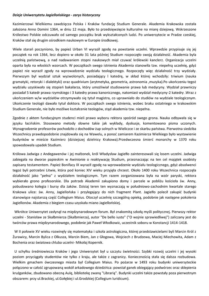Dzieje Uniwersytetu Jagiellońskiego - zarys historyczny