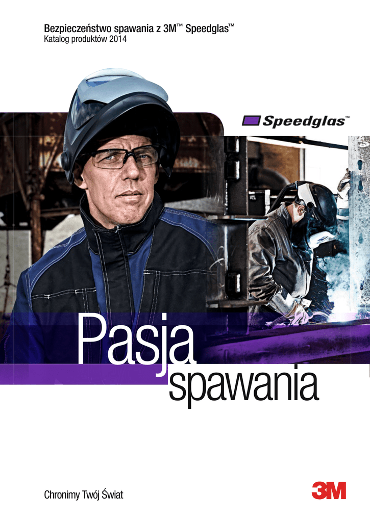 Bezpieczeństwo spawania z 3M™ Speedglas™ Katalog produktów 2014 Pasja spawania Chronimy Twój Świat Przyłbica spawalnicza najlepsza w swojej klasie – strona 6 2 Ochrona oczu, twarzy i głowy spawacza 3M™ Przyłbica spawalnicza Speedglas™ 9100 Przyłbica spawalnicza Speedglas™ SL Przyłbica spawalnicza Speedglas™ 100 Przyłbice spawalnicze Speedglas™ z hełmem ochronnym 6 16 18 22 Ochrona dróg oddechowych spawacza 3M™ Większe pole widzenia i wszechstronna ochrona – strona 15 System filtrujący Adflo™ z wymuszonym przepływem powietrza Aparat wężowy sprężonego powietrza Versaflo™ V-500E Systemy ochrony dróg oddechowych z wizjerem ochronnym 24 28 30 Często zadawane pytania Spis części Konserwacja i czyszczenie Specyfikacje techniczne Spis produktów 32 40 62 63 66 Nasza najlżejsza przyłbica spawalnicza – strona 16 Zaprojektowane zgodnie z potrzebami spawacza – strona 24 Przyłbice Speedglas z motywami graficznymi – strona 20 3 Ponad 35 lat temu poszliśmy do stoczni w Szwecji, aby obserwować pracę spawaczy. Spawali, nic nie widząc, ponieważ ciągle opuszczali przyłbice. Od tamtego czasu firma 3M zaangażowała się w rozwijanie narzędzi, które na zawsze odmieniły świat spawacza. Od pierwszej przełomowej przyłbicy spawalniczej z automatycznym filtrem z 1981 roku, aż do obecnego asortymentu nowoczesnych produktów ochronnych dla spawaczy, nadal rewolucjonizujemy Twój świat. Twoja praca naszą inspiracją Mamy w sobie pasję do spawania i znamy wyzwania jakie stawia Twój zawód. Naturalnie przychodzi nam dzielić z Tobą dumę i troski, które wkładasz w pracę, aby sprostać wszystkim problemom ergonomii i bezpieczeństwa, którym stawiasz czoła każdego dnia. Twoja opinia i uwagi stanowią punkt odniesienia naszych nieustannych poszukiwań innowacji. Inspirowani Twoją pracą, kształtujemy przyszłość spawalnictwa, by umożliwić Ci kształtowanie przyszłość Przyłbica spawalnicza 3M™ Speedglas™ 9100 MP z systemem filtrującym 3M™ Adflo™ naszej firmy. z wymuszonym przepływem powietrza. 4 5 Pole widzenia 6 wyznacznikiem Twoich możliwości Ochrona oczu, twarzy i głowy Wyznaczając wzorce, którymi podążają pozostali, innowacja jest sposobem na utrzymanie pozycji lidera. Wszystkie nasze przyłbice spawalnicze i środki ochrony są wynikiem naszego zaangażowania w ciągły rozwój. Przyszłość spawania? Jest w Twoich rękach. Przyłbica spawalnicza 3M™ Speedglas™ 9100 Przyłbica spawalnicza 3M™ Speedglas™ 9100 Air Przyłbica spawalnicza 3M™ Speedglas™ 9100 FX Poczuj różnicę! Profesjonalni spawacze są zachwyceni naszym najwyższym modelem przyłbicy spawalniczej 3M™ Speedglas™ 9100. Z pasją stawiamy czoła wyzwaniom. • Najwyższy comfort. • Zwiększona równowaga i stabilność. Przyłbica spawalnicza 3M™ Speedglas™ 9100 MP • Znakomita optyka i zwiększone pole widzenia. • Lepsza osłona. • Przyłbice spawalnicze z podnoszonym modułem automatycznego filtra oraz przezroczystą szybką ochronną. • Przyłbice spawalnicze z nowymi opcjami ochrony dróg oddechowych. • Nowy system wszechstronnej ochrony: przyłbica spawalnicza 3M™ Speedglas™ z hełmem ochronnym 9100 MP i systemem ochrony dróg oddechowych. Chesz już dziś poznać przyszłość spawalnictwa? Przyłbica spawalnicza 3M™ Speedglas™ 9100 FX Air Skontaktuj się z lokalnym dystrybutorem 3M w celu pokazowej prezentacji. 7 Ochrona oczu, twarzy i głowy Przyłbica spawalnicza 3M™ Speedglas™ 9100 Nagłowie, które dopasowuje sie do głowy użytkownika Wszystkie przyłbice spawalnicze Speedglas serii 9100 Nagłowie zapewnia wiele opcji regulacji, umożliwiając są wyposażone w wygodne nagłowie z wieloma opcjami zmianę ustawień zgodnie z indywidualnymi preferencjami. regulacji. Na szczycie głowy znajdują się nerwy, tętnice Mniejszy ucisk oraz doskonałe dopasowanie zgodnie oraz punkty akupresury; ucisk na niektóre z tych punktów z preferencjami użytkownika zapewnia większa wygodę wywołuje uczucie zmęczenia. Nagłowie serii 9100 jest przez cały dzień. tak skonstruowane, aby omijać te wrażliwe miejsca. Pasuje do rozmiarów głowy od 50 do 64. Więźba o gładkiej powierzchni pozwala na precyzyjne naciągnięcie nagłowia. Nagłowie jest wyposażone w obrotowy, samodopasowujący się tylny pasek pod którym zmieści się czapka noszona daszkiem do tyłu. Większy komfort w pozycji podniesionej Gdy przyłbica znajduje się w pozycji podniesionej, jej „najwyższy punkt” jest położony znacznie niżej niż w wielu innych przyłbicach. Z konstrukcyjnego punktu widzenia oznacza to, że przyłbica znajduje się tak blisko głowy jak to jest tylko możliwe. Ponieważ przyłbica jest bardziej wyważona, nie ma potrzeby silnego naprężania taśm nagłowia, co jeszcze bardziej podnosi wygodę noszenia. Pozycja „parkująca” Przyłbica umożliwia płynną regulację kąta jej nachylenia, który można „zablokować” w określonej pozycji – lekkie pociągnięcie pozwala na ponowne nachylenie przyłbicy w dół. 8 Dwa regulowane paski na szczycie głowy zapewniają lepszą stabilność. Samodopasowujące się „podwójne podkładki”, których kształt dopasowuje się do głowy użytkownika. Przesuwany przegub pozwala regulować odległość osłony w stosunku do twarzy. Pokrętła do płynnej regulacji położenia przyłbicy ochronnej, której można dokonywać nawet w rękawiczkach. Użytkownik może regulować kąt nachylenia przyłbicy bez konieczności zdejmowania jej z głowy. Ochrona oczu, twarzy i głowy Znakomita optyka, zwiększone pole widzenia Filtry spawalnicze 3M™ Speedglas™ 9100 stanowią kontynuację naszej tradycji niezrównanej optycznej jakości, zapewniając jednolite zaciemnienie oraz minimalne zniekształcenia w całym polu widzenia filtra. Wybór ustawień, które są właściwe dla danego zadania, pozwala zmniejszyć zmęczenie oczu i zapewnia lepszą jakość ka