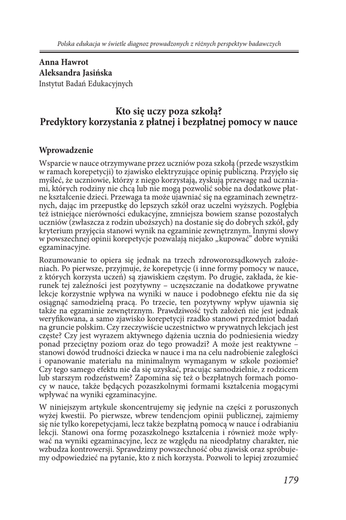 Predyktory korzystania z płatnej i bezpłatnej pomocy w nauce