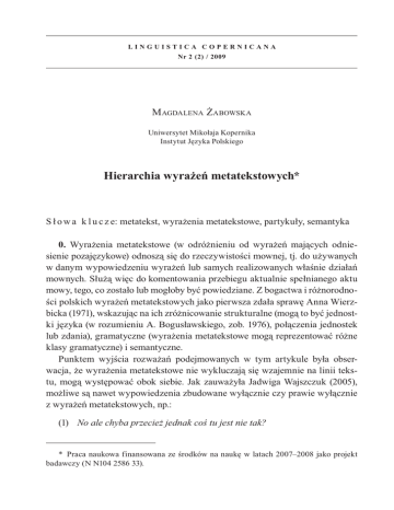 Hierarchia wyrażeń metatekstowych - Linguistica Copernicana