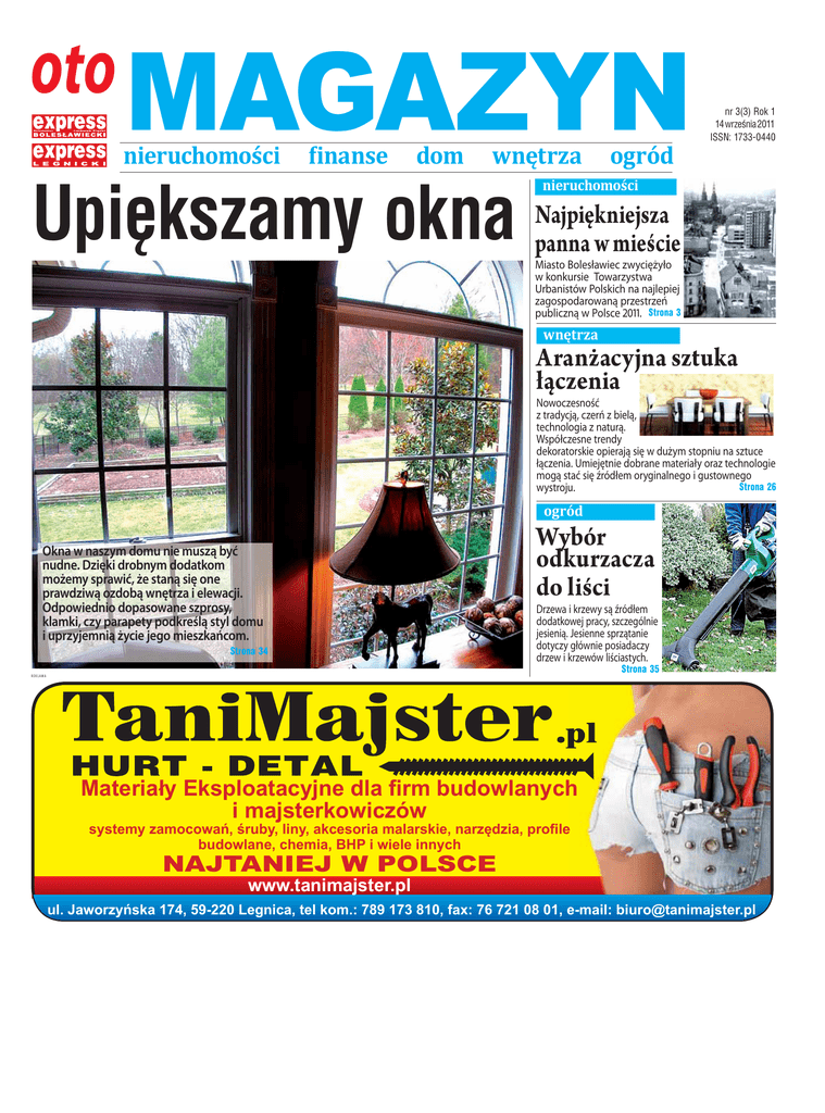 MAGAZYN nieruchomości inanse dom wnętrza Upiększamy okna nr 3(3) Rok 1 14 września 2011 ISSN: 1733-0440 ogród nieruchomości Najpiękniejsza panna w mieście Miasto Bolesławiec zwyciężyło w konkursie Towarzystwa Urbanistów Polskich na najlepiej zagospodarowaną przestrzeń publiczną w Polsce 2011. Strona 3 wnętrza Aranżacyjna sztuka łączenia Nowoczesność z tradycją, czerń z bielą, technologia z naturą. Współczesne trendy dekoratorskie opierają się w dużym stopniu na sztuce łączenia. Umiejętnie dobrane materiały oraz technologie mogą stać się źródłem oryginalnego i gustownego Strona 26 wystroju. ogród Okna w naszym domu nie muszą być nudne. Dzięki drobnym dodatkom możemy sprawić, że staną się one prawdziwą ozdobą wnętrza i elewacji. Odpowiednio dopasowane szprosy, klamki, czy parapety podkreślą styl domu i uprzyjemnią życie jego mieszkańcom. Strona 34 Wybór odkurzacza do liści Drzewa i krzewy są źródłem dodatkowej pracy, szczególnie jesienią. Jesienne sprzątanie dotyczy głównie posiadaczy drzew i krzewów liściastych. Strona 35 R E K L A M A !"# NAJTANIEJ W POLSCE $$ $ % &'( )*+,,- ./ $0 '1* &'2 1&- 340 '5 ',& -1 -& +0 6$ 2 LSSE na walizkach Legnicka Specjalna Strefa Ekonomiczna kupiła poniemiecką willę na Tarninowie. We wrześniu zarząd spółki zdecyduje, czy to będzie nowa siedziba. LSSE rozpoczęła remont luksusowego budynku przy ul. Kolbego 14. Prace adaptacyjne potrwają do września. We wrześniu zarząd LSSE ma zdecydować, czy przenosimy sie- MAGAZYN nieruchomości 14 września 2011 Jest kupiec na Galerię Piastów Za 68,5 mln euro firma Rank Progress sprzedaje Galerię Piastów. Umowę przedwstępną podpisała ze spółką Bolsa Global Quimera. r. wyniósł on 60,3 mln zł), realizując 41% tegorocznej prognozy. Aktywa zwiększyły się do kwoty 965,4 mln zł i były większe o 13% w porównaniu z końcem roku ubiegłego. Przychody dzibę na ulicę Kolbego. - informuje rzecznik prasowy LSSE Maciej Rojowski. - Jeśli tak się stanie, budynek przy ul. Kominka (obecna siedziba LSSE - przyp. red.) zostanie wynajęty. TOW, Fot. TOW Zebrali 10 000 zł na podwórko Kibice Miedzi Legnica czekają już tylko na zgodę prezydenta, by ruszyć z budową placu zabaw dla dzieci. Zebrali już 10 tys. zł na huśtawki, ślizgawki i drewniany zameczek, które powstaną na podwórku przy ul. Nowy Świat. - Jedno z podwórek na Nowym Świecie walczy o budowę placu zabaw w konkursie Nivea, a my postanowiliśmy wyposażyć drugie w plac zabaw – tłumaczy Krzysztof Piotrowski, prezes Stowarzyszenia Kibiców „Tylko Miedź”. - Rozmawialiśmy z sami dziećmi i mówiły nam co chcą, by im tu zamontować, a czego z podwórka nie chcą ruszać. Między innymi tej, dawnej sauny, bo to ich miejsce kryjówek. Podwórko sąsiaduje z dawnym Wojewódzkim Domem Kultury. Dzieci bawią się tu w makabrycznych warunkach, wśród zwierzęcych odchodów i powyrzucanych na śmieci mebli. Ich ulubioną rozrywka jest palenie ogniska na da- chu dawnego WDK. Rok temu jedno z dzieci z niego spadło i musiało być reanimowane. Kibice od razu odpowiedzieli na apel o budowę placu zabaw. Chcą by plac zabaw był bezpieczny, ogrodzony i by sami mieszkańcy pomogli w jego budowie. Fani Miedzianki zebrali już 10 tys. zł, zamówili koparkę, która wyrówna plac. Czekają jedynie na pozwolenie na budowę z legnickiego ratusza i dogadanie się z legnickimi wspólnotami. - Chcemy przekonać każdą z sześciu wspólnot, by kupiły po ławeczce na nowy plac zabaw – dodaje Piotrowski. TOW MAGAZYN bezpłatny dodatek do Expressu Legnickiego Fot. TOW Oddział w Legnicy: 59-220 Legnica, ul. Najświętszej Marii Panny 5b Dyrektor oddziału Piotr Leszczyszyn, 076 744 28 46 Biuro reklam i ogłoszeń tel. 76 744 28 44, [email protected] ze sprzedaży Grupy Kapitałowej wyniosły 33,4 mln zł, co oznacza wzrost o 36% w odniesieniu do pierwszego półrocza 2010. - Mimo sytuacji na światowych rynkach, rozwijamy się dynamicznie i, podobnie jak wiele spółek giełdowych, osiągamy dobre wyniki finansowe. Na 2011 rok prognozujemy zysk na poziomie 132,7 mln zł i dzisiaj podtrzymujemy tę prognozę. Biorąc pod uwagę ożywienie w branży nieruchomości komercyjnych w Polsce oraz rosnące zainteresowanie nimi inwestorów zagranicznych, należy się spodziewać, że rynek ten będzie perspektywiczny” – mówi Jan Mroczka, Prezes Zarządu Rank Progress SA.” Legnicka Galeria Piastów to trzypoziomowe, największe w mieście centrum handlowe oferujące na powierzchni 35 tys. mkw. 100 sklepów i punktów usługowych, supermarket sieci Piotr i Paweł, klub fitness, kręgielnię oraz kino Helios. TOW Fot. TOW „Na podstawie umow y przedwstępnej strony transakcji zobowiązały się zawrzeć przyrzeczoną umowę sprzedaży Galerii Piastów nie później niż do dnia 30 października 2011 r. za cenę 68.500.000 euro netto” - czytamy w komunikacie firmy developerskiej Rank Progress. Jak to się stało, że firma developerska Rank Progress chce się pozbyć swojej perełki, nazywanej Koroną Legnicy i Królestwem Zakupów? - Władze firmy zamierzały sprzedać galerię tylko w sytuacji, gdy pojawi się naprawdę korzystna oferta – informuje Halina Wyborska, dyrektor zespołu public relations Rank Progress. Jeżeli dojdzie do transakcji, Rank Progress ma szansę sprzedać swoją perełkę z pokaźnym zyskiem, bowiem 68,5 mln euro to około 287,7 mln zł. - Dla firm wynajmujących powierzchnie Galerii Piastów sprzedaż nie będzie mieć żadnego znaczenia, ponieważ będą obowiązywać poprzednie umowy najmu – zapewnia Wyborska. To nie jedyna galeria handlowa, którą sprzeda w tym roku Rank Progress. 1 września sfinalizowano umowę sprzedaży zamojskiej Galerii Twierdza Oddział w Bolesławcu: 59-700 Bolesławiec, ul. Sierpnia 80 nr 18, pok. 106 Kierownik oddziału Ewa Gabrych e.gabrych@ otoboleslawiec.pl tel. 75 642 67 35, 607 525 788 Biuro reklam i ogłosze