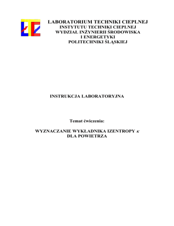 LABORATORIUM TECHNIKI CIEPLNEJ INSTYTUTU TECHNIKI CIEPLNEJ WYDZIAŁ INŻYNIERII ŚRODOWISKA I ENERGETYKI POLITECHNIKI ŚLĄSKIEJ INSTRUKCJA LABORATORYJNA Temat ćwiczenia: WYZNACZANIE WYKŁADNIKA IZENTROPY κ DLA POWIETRZA Wyznaczanie wykładnika izentropy k dla powietrza 2 1. WSTĘP Stosunek ciepła właściwego przy stałym ciśnieniu do ciepła właściwego przy stałej objętości oznacza się grecką literą κ: κ= cp cv = (Mc ) p (Mcv ) . (1) Ma on istotne znaczenie przy badaniu i analizie teoretycznej dotyczącej gazów. W przypadku gazów doskonałych liczba ta ma wartość stałą i występuje w równaniu POISSONa opisującego przemianę izentropową gazu doskonałego: pv κ = idem . (2) Dla gazów doskonałych: • jednoatomowych κ = 1.666 (1.67), • dwuatomowych κ = 1.400, • więcej niż dwuatomowych κ = 1.333. Jedną z szeroko stosowanych metod pomiaru liczby κ jest metoda oparta na pomiarze prędkości dźwięku. Łatwiejszą i bardziej bezpośrednią metodą pomiaru κ jest metoda Clementa-Desormesa, którą wykorzystuje się w tym ćwiczeniu do pomiaru κ powietrza atmosferycznego. 2. OPIS METODY POMIAROWEJ Stanowisko badawcze (rys.1) służące do pomiaru wykładnika izentropy κ metodą Celmenta-Desormesa składa się z trzech zasadniczych elementów: • zbiornika o objętości kilkudziesięciu litrów, • sprężarki służącej do wtłaczania powietrza do zbiornika, • manometru do pomiaru nadciśnienia powietrza w zbiorniku. 4 5 Rys. 1 Schemat stanowiska pomiarowego 2 6 3 1 Instrukcja laboratoryjna LABORATORIUM TECHNIKI CIEPLNEJ 1 – zbiornik, 2 – sprężarka, 3 – manometr cieczowy, 4 – zawór łączący zbiornik z otoczeniem, 5 – zawór odcinający, 6 – zbiornik kompensacyjny cieczy manometrycznej Wyznaczanie wykładnika izentropy k dla powietrza 3 W czasie pomiaru do zbiornika wtłacza się badany gaz z niewielkim nadciśnieniem początkowym pm1’ (h1’ ≅ 200 mmH2O). Po osiągnięciu warunków równowagi (w wyniku sprężenia gazu jego temperatura będzie wyższa od temperatury powietrza w otoczeniu) ustali się początkowe nadciśnienie pm1 (h1 pomierzone na tzw. U-rurce). Otwiera się wtedy zawór znajdujący się na przewodzie łączącym zbiornik z otoczeniem i zamyka się go po wyrównaniu się ciśnienia w zbiorniku z ciśnieniem otoczenia (po około 1-1.5 s). Ponieważ zjawiska przepływu ciepła są zjawiskami stosunkowo wolnymi można przyjąć, że rozprężanie gazu odbywało się adiatermicznie (adiabatycznie). W czasie tego procesu temperatura gazu w zbiorniku spadła poniżej temperatury otoczenia. Po pewnym czasie ciepło z otoczenia dopłynie do gazu w zbiorniku, który znów osiągnie temperaturę otoczenia. W wyniku ogrzania gazu przy stałej objętości jego ciśnienie wzrośnie do pewnej wartości (niższej od wartości początkowej) tak, że nadciśnienie wyniesie pm2 (h2). ∆pad = h1 Tot=idem ∆piz 1 2 s=idem v=idem h2 p 2s v Rys. 2 Zmiany parametrów gazu w czasie przemian Na wykresie p-v rozprężanie gazu zachodzi w czasie przemiany 1-2s (rozprężanie izentropowe, adiabatyczne), zaś sprężanie izochorycznie od 2s do 2. Ponieważ punkty 1 i 2 leżą na izotermie Tot, więc można przyjąć, że stan 2 gazu mógłby zostać osiągnięty na drodze izotermicznego (Tot = idem) rozprężania. Spadek ciśnienia w czasie adiabatycznego rozprężania: ∆p ad = p1 − p 2 s = p m1 = γ c ⋅ h1 . (3) Gdyby rozprężanie zachodziło izotermicznie, to: ∆p iz = p1 − p 2 = p m1 − p m 2 = γ c ⋅ (h1 − h2 ) . Instrukcja laboratoryjna LABORATORIUM TECHNIKI CIEPLNEJ (4) Wyznaczanie wykładnika izentropy k dla powietrza 4 Tak więc: ∆p ad = p m1 = γ c ⋅ h1 . (5) ∆p iz = p m1 − p m 2 = γ c ⋅ (h1 − h2 ) . (6) Wielkości tych spadków ciśnienia można wyznaczyć na drodze rozważań teoretycznych. adiabata (adiaterma) izoterma s = idem T = idem pv κ = idem = c pv = idem = c1 ln p + κ ln v = ln c ln p + ln v = ln c1 dp dv +κ =0 p v dp dv + =0 p v dp p = −κ dv v dp p =− dv v Jeżeli ∆p jest niewielkie, to: ∆p ad p ≈ −κ v ∆v (7) ∆p iz p ≈− ∆v v (8) Dzieląc (7) przez (8) otrzymuje się: κ= ∆p ad . ∆p iz (9) Po wprowadzeniu (5) i (6) do wzoru (9) otrzymuje się ostatecznie: κ= ∆p ad p m1 h1 = = . ∆p iz p m1 − p m 2 h1 − h2 (10) Do wyznaczenia κ potrzeba więc pomierzyć początkowe spiętrzenie słupa cieczy h1 oraz końcowe h2 (po izochorycznym spiętrzeniu). Wyrażenie (10) swą postać zawdzięcza uproszczeniom poczynionym przy zyskaniu zależności (7) i (8). Można wykazać, że dokładny wzór na obliczenie k ma postać: p1 p ot , κ= p1 ln p2 ln gdzie: (11) p1 = p ot + h1γ c p 2 = p ot + h2 γ c Zatem do zastosowania wzoru (11) konieczna jest także znajomość ciśnienia otoczenia. Przy pomiarach na ćwiczeniach laboratoryjnych wystarczy stosować proste wyrażenie (10) do obliczenia κ. Instrukcja laboratoryjna LABORATORIUM TECHNIKI CIEPLNEJ Wyznaczanie wykładnika izentropy k dla powietrza 5 3. PRZEBIEG ĆWICZENIA • • • • • • • • Otworzyć zawór 5 łączący zbiornik ze sprężarką. Sprężyć powietrze do nadciśnienia h1’ wynoszącego około 200 mmH2O. Zamknąć zawór 5. Odczekać aż temperatura gazu w zbiorniku osiągnie temperaturę otoczenia (w wyniku sprężania temperatura wzrasta). W odstępach czasu zadanych przez prowadzącego należy odczytywać aktualną wartość spiętrzenia słupa wody, aż do ustalenia się go na stałym poziomie – odczytać wartość nadciśnienia h1. Otworzyć zawór 4 i wypuścić powietrze do otoczenia, aby ciśnienie w zbiorniku osiągnęło poziom ciśnienia otoczenia i po około 1-1.5 s zamknąć zawór. W odstępach czasu zadanych przez prowadzącego należy odczytywać aktualną wartość spiętrzenia słupa wody oczekując na ustalenie się nadciśnienia h2. Obliczyć wartość κ korzystając ze wzoru (10). Pierwszą serię pomiarową wykonuje się wraz z prowadzącym ćwiczenie. Jeden pomiar