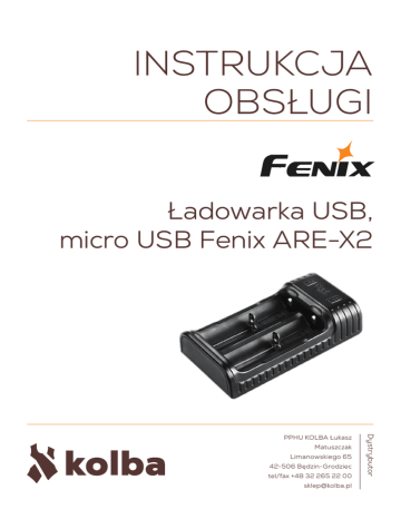 INSTRUKCJA OBSŁUGI Ładowarka USB, micro USB Fenix ARE-X2 Matuszczak Limanowskiego 65 42-506 Będzin-Grodziec tel/fax +48 32 265 22 00 [email protected] Dystrybutor PPHU KOLBA Łukasz 2 Cechy czerwony, a następnie na zielony, jeżeli proces • Ładowarka na 2 akumulatory ogniwa Li-ion 10440, 14500, 16340, 18650, 26650 oraz ni-mh AA, AAA • Ładowanie prądem stałym ładowania się zakończy. • Po zakończeniu ładowania należy wyjąć baterie i odłączyć zasilanie. • Dwa niezależne kanały ładowania • Dwa wskaźniki LED pokazujące aktualny stan naładowania ogniwa Uwagi • Ładowanie innych akumulatorów prowadzi do uszkodzenia ogniw, wycieku elektrolitu lub wybu- Specyfikacja techniczna • Wejście: 100-240 V (AC), 50/60 Hz, 200 mA (max) 12-24 V (DC), 1000 mA (max) • Wymiary: 115 mm × 63 mm × 30 mm (dł. × szer. × wys.) • Waga: 96 g (bez baterii) • Środowisko pracy: wilgotność (temp.) 5% (0ºC) – 90% (40ºC) chu, co stanowi zagrożenie zdrowia i życia. • Należy stosować urządzenie we wskazanych powyżej warunkach i wyłączać zasilanie po skończonej pracy. • Należy prawidłowo wkładać baterie do ładowarki. • Nie należy demontować elementów ładowarki, modyfikować jej, ani używać w celach innych niż ładowanie akumulatorów. • Temperatura przechowywania: -20ºC – 80ºC • Trzymać z dala od dzieci. Dzieci mogą korzystać Zabezpieczenia • Nigdy nie ładować baterii jednorazowych. z urządzenia jedynie w obecności osoby dorosłej. • Zabezpieczenie przed zwarciem • Zabezpieczenie przed zbyt wysokim napięciem • Zabezpieczenie przed niewłaściwą polaryzacją • Zabezpieczenie przed przeładowaniem Diody LED Diody LED informują o stanie naładowania akumulatora. Instrukcja użytkowania Umieść ogniwo zgodnie z polaryzacją. Podłącz kabel zasilania do gniazda USB. Ładowarka sprawdzi stan naładowania baterii, czego sygnalizacją będzie odpowiedni poziom diód. Jeżeli akumulator nie zostanie włożony lub jeżeli będzie on uszkodzonya, żadna dioda nie będzie się świecić. W takim przypadku należy wyjąć akumulator z ładowarki. Uwaga! • Nie wolno podpinać ładowarki jednocześnie do gniazda sieciowego i samochodowego. • Po sprawdzeniu stanu naładowania akumulatora, ładowarka automatycznie rozpocznie proces ładowania. Dioda LED zaświeci się na kolor 3 KARTA GWARANCYJNA Nazwa towaru Typ Ładowarka USB, micro USB Fenix ARE–X2 Numer fabryczny Data sprzedaży Pieczątka i podpis punktu sprzedaży Data przyjęcia Data wydania Opis usterki Pieczęć serwisu 4 WARUNKI GWARANCJI 1. Sprawne urządzenie nie podlega wymianie. 2. Ujawnione w okresie gwarancji wady będą usuwane bezpłatnie w terminie 21 dni roboczych od daty zgłoszenia reklamacji. 3. W przypadku, gdy naprawa wymaga importu części zamiennych z zagranicy termin naprawy może ulec wydłużeniu. przekraczającej zakres normalnych czynności eksploatacyjnych. 7. Gwarancji nie podlegają części obudowy i akcesoria podlegające normalnemu zużyciu w czasie eksploatacji jak zarysowanie, zabrudzenie trudne do usunięcia, wytarcie napisów itp. 8. Gwarancja nie obejmuje materiałów eksploatacyjnych. 4. Niniejszą gwarancją są objęte usterki spowo- 9. Karta gwarancyjna jest ważna po okazaniu dowo- dowane wadliwymi częściami i/lub defektami du zakupu, jeżeli jest ostemplowana przez sprze- produkcyjnymi. dawcę, posiada czytelnie i poprawnie wypełnione 5. Nabywcy przysługuje prawo wymiany sprzętu na nowy, jeżeli w okresie gwarancji upoważniony zakład stwierdzi, że usunięcie wady nie jest możliwe wszystkie rubryki bez zmian i skreśleń. 10.Reklamujący jest zobowiązany dostarczyć urządzenie do punktu sprzedaży. lub zostaną dokonane cztery naprawy przez upo- 11. Ewentualny koszt nieuzasadnionych roszczeń wy- ważniony punkt naprawczy, a sprzęt będzie nadal nikających z warunków gwarancji oraz testowania wykazywał wady uniemożliwiające używanie go zgodnie z przeznaczeniem. 6. N abywc a traci uprawnienia gwarancy jne ponosi Nabywca. 12.W celu przyspieszenia realizacji naprawy gwarancyjnej należy wraz z reklamowanym towarem w przypadku: dostarczyć dokładny opis usterki uwzględniają- • mechanicznego lub termicznego uszkodze- cy w szczególności jej zewnętrzne objawy oraz nia sprzętu, • niewłaściwej eksploat acji (niezgodnej z instrukcją) • n i ew ł a ś c i we g o p r ze c h ow y w a n i a l u b transportowania, • uszkodzeń spowodowanych przez wypad- DOKŁADNY ADRES ZWROTNY wraz z TELEFONEM KONTAKTOWYM. 13.Ewentualne spory związane z realizacją obowiązków gwarancyjnych będą rozstrzygane przez sąd właściwy dla siedziby PPHU Kolba. 14. Zakup urządzenia objętego niniejszą gwarancją jest ki losowe (pożar, wyładowania atmosferycz- równoznaczne z przyjęciem poniższych warunków. ne, zalanie, działanie środków chemicznych 15.Gwarancja na sprzedany towar konsumpcyjny nie oraz okoliczności i sił wyższego rzedu itp.), wyłącza, nie ogranicza, ani nie zawiesza upraw- samowolnej ingerencji nabywcy oraz innych nień kupującego wynikających z niezgodności to- nieuprawnionych osób we wnętrze produktu waru z umową. OŚWIADCZAM, ŻE ZAPOZNAŁEM SIĘ I AKCEPTUJĘ WARUNKI NINIEJSZEJ GWARANCJI _____________________________________________________________________________________________________ PODPIS I DATA PUNKT SERWISU GWARANCYJNEGO I POGWARANCYJNEGO PPHU Kolba udziela niniejszej gwarancji na okres 24 miesięcy licząc od daty sprzedaży. PPHU Kolba Matuszczak Łukasz ul. Limanowskiego 65; 42-506 Będzin-Grodziec tel/fax 32 265 22 00 wew. 24 www.kolba.pl [email protected]